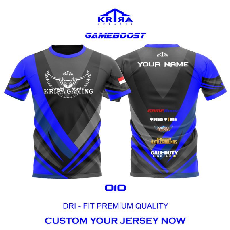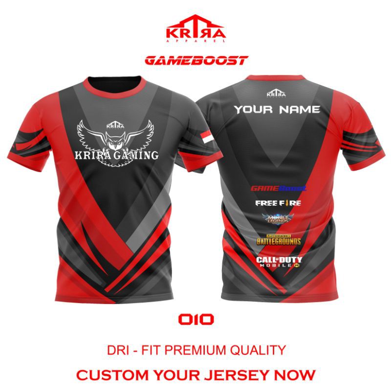 BAJU KAOS JERSEY GAMING 010 CUSTOM GAME FREE FIRE MOBILE LEGEND PUBG CODM ANAK JUMBO KRIRA APPAREL