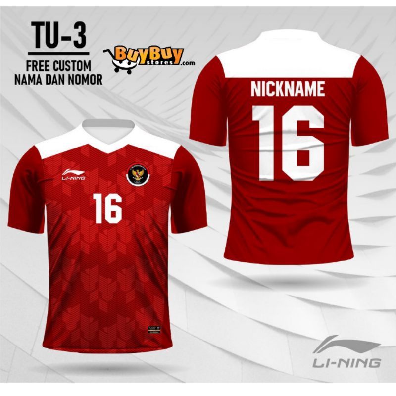BAJU KAOS JERSEY TIMNAS INDONESIA LINNING TERBARU FREE NAMA DAN NO PUNGGUNG