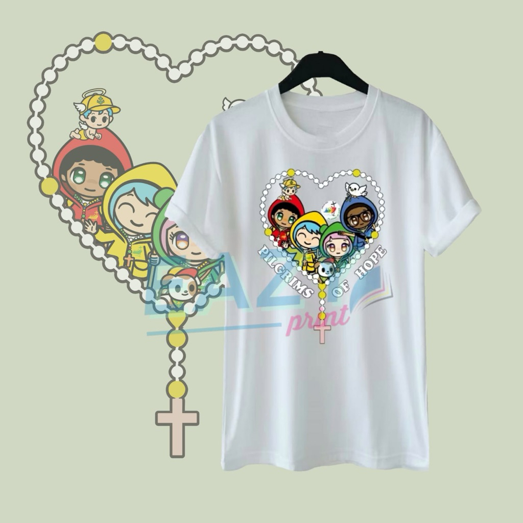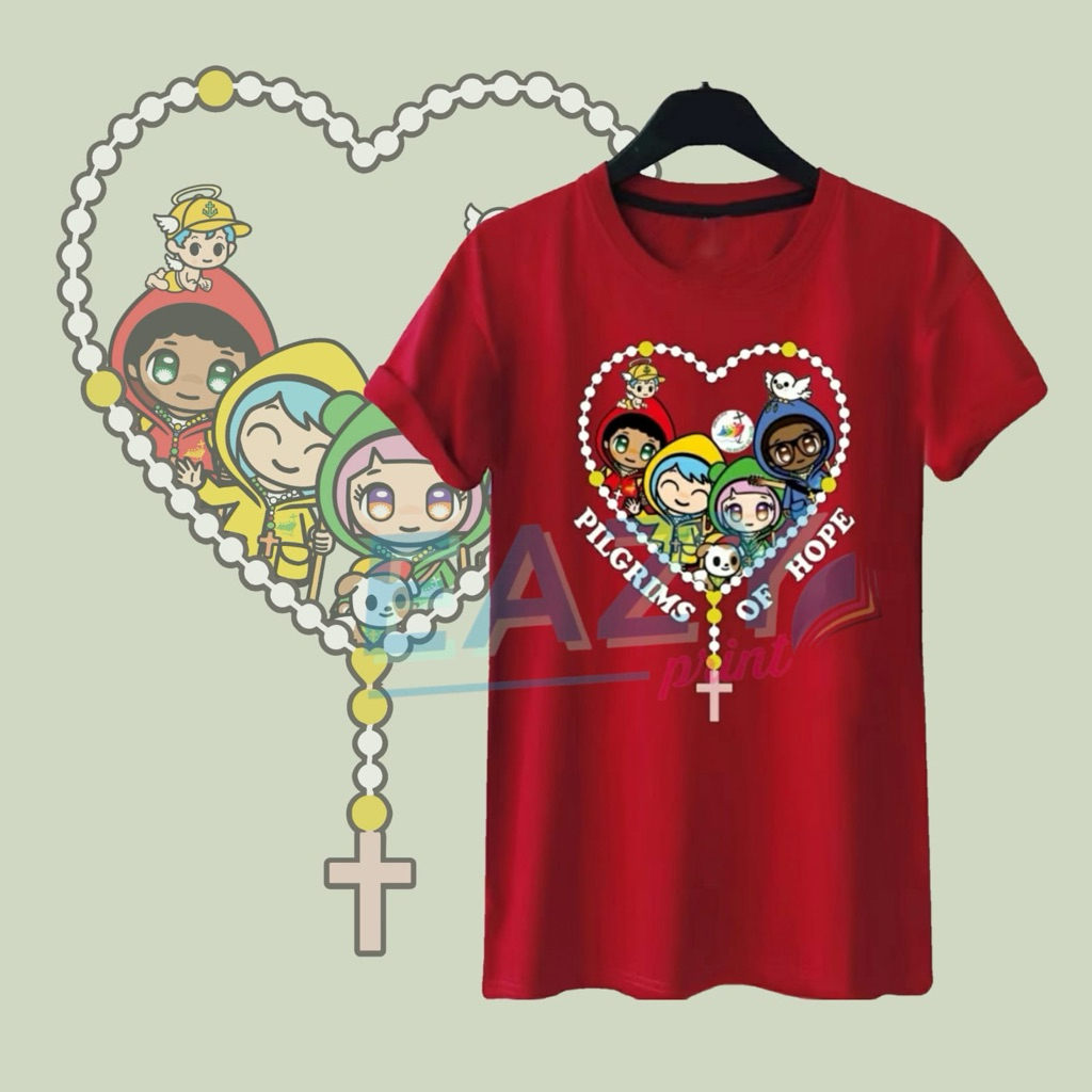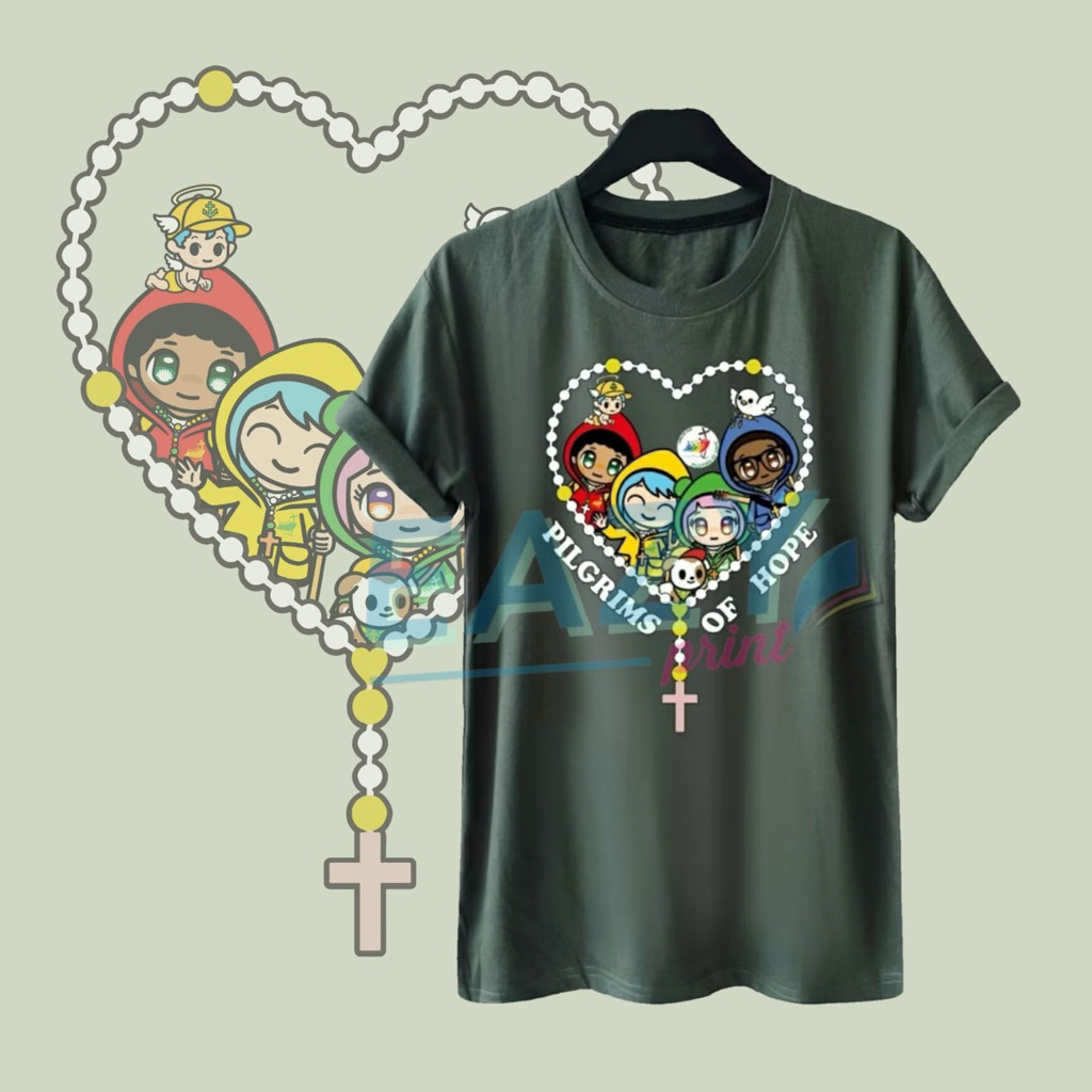 BAJU KAOS LUCE AND FRIENDS KALUNG ROSARIO SERAGAM YUBILEUM ACARA GEREJA KATOLIK KRISTIANI PEZIARAH PENGHARAPAN YUBELIUM 2025 PORTA SANCTA