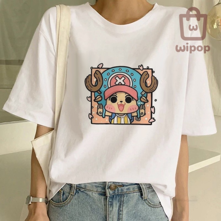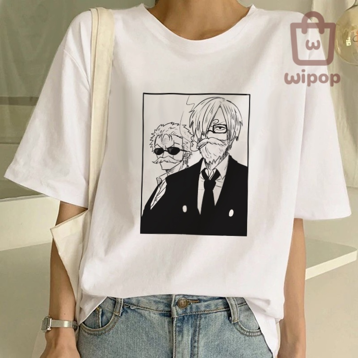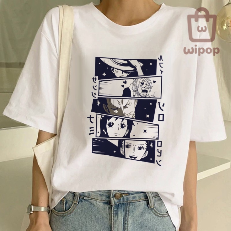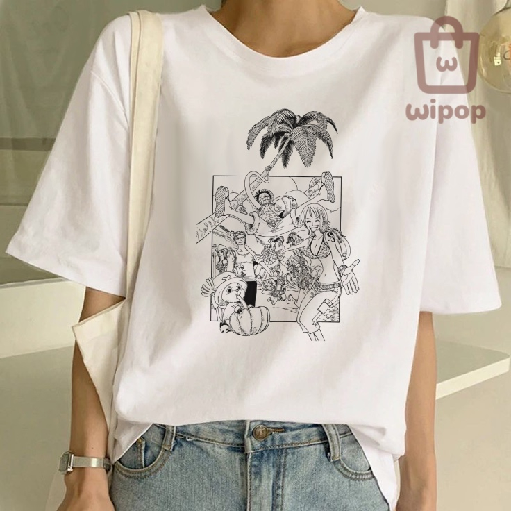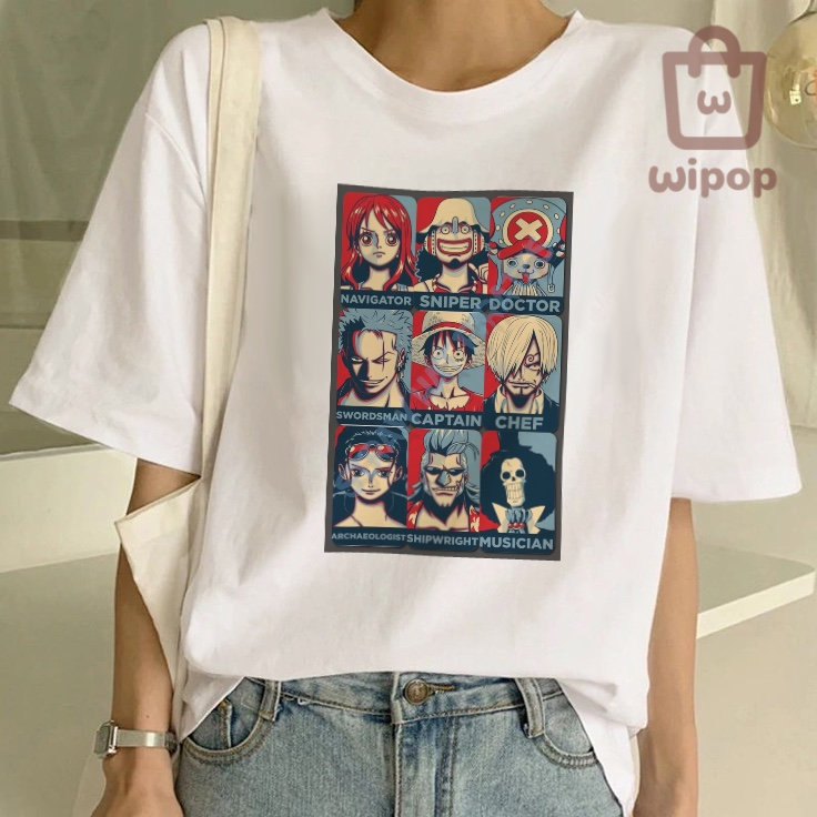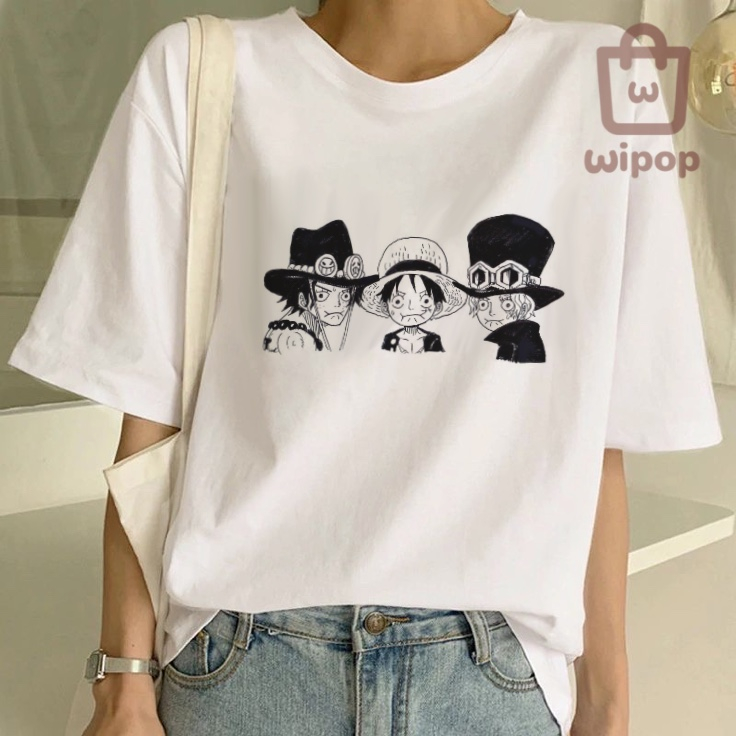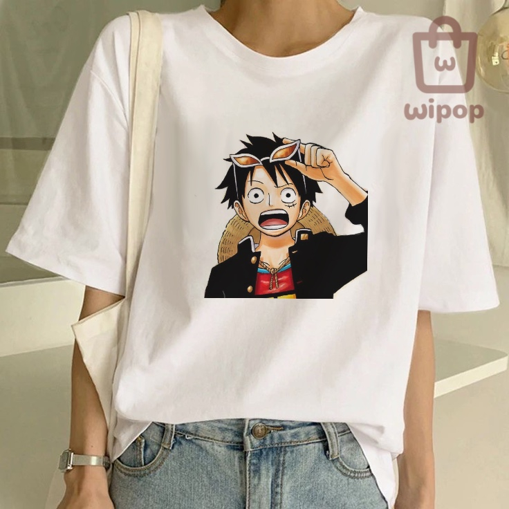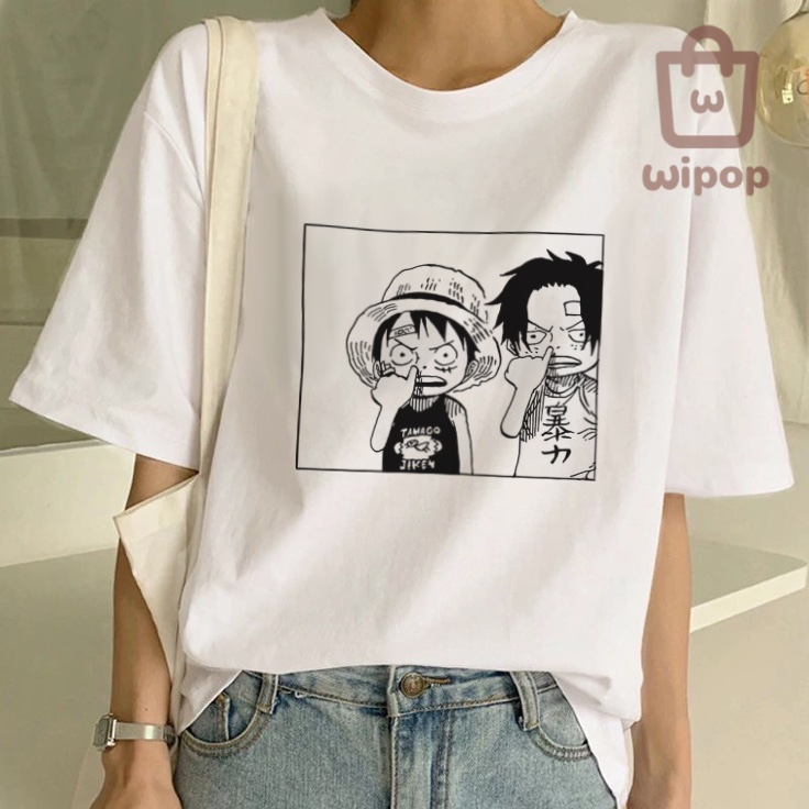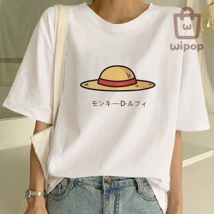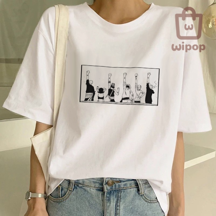 BAJU KAOS OVERSIZE TEE MOTIF ONE PIECE ANIME / BAJU UNISEX PUTIH