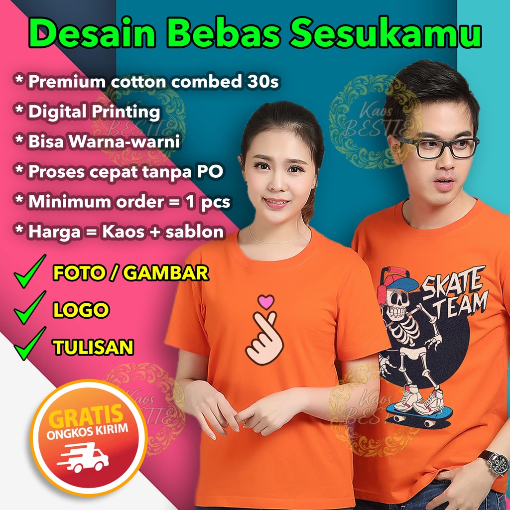 BAJU KAOS SABLON CUSTOM SATUAN FOTO GAMBAR NAMA TULISAN KATA - KATA DESAIN SENDIRI DTF KAOSBESTIE