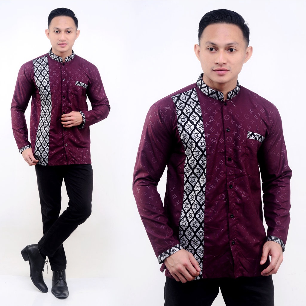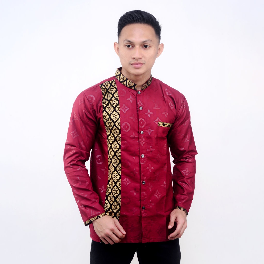 BAJU KOKO BATIK EMAS LENGAN PANJANG BUSANA MUSLIM SERAGAM HADROH HILWA AZAHIR ALKHALIS