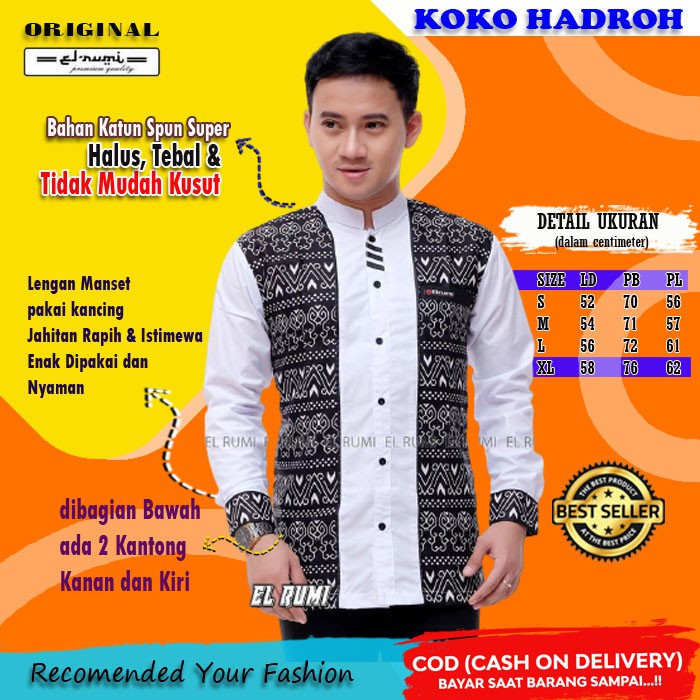 BAJU KOKO MODERN KOMBINASI BATIK LENGAN PANJANG SERAGAM HADROH FASHION MUSLIM BAHAN KATUN SPUN SUPER
