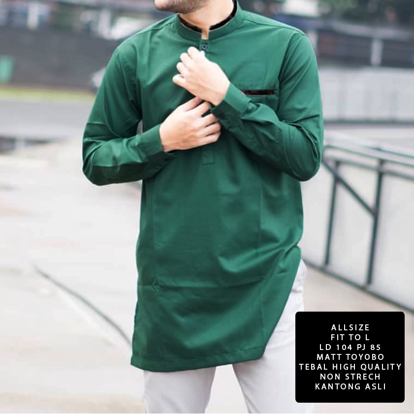 BAJU KOKO PRIA warna HIJAU ARMY kemeja koko kerah shanghai koko ANWA Lengan panjang