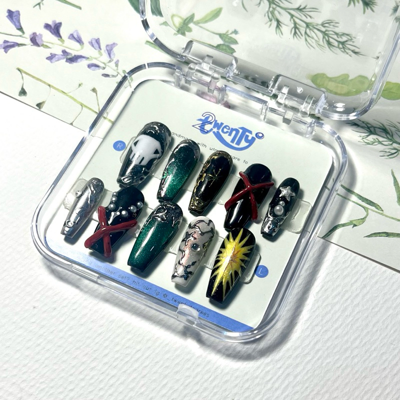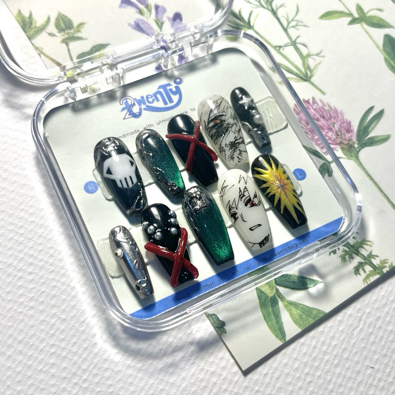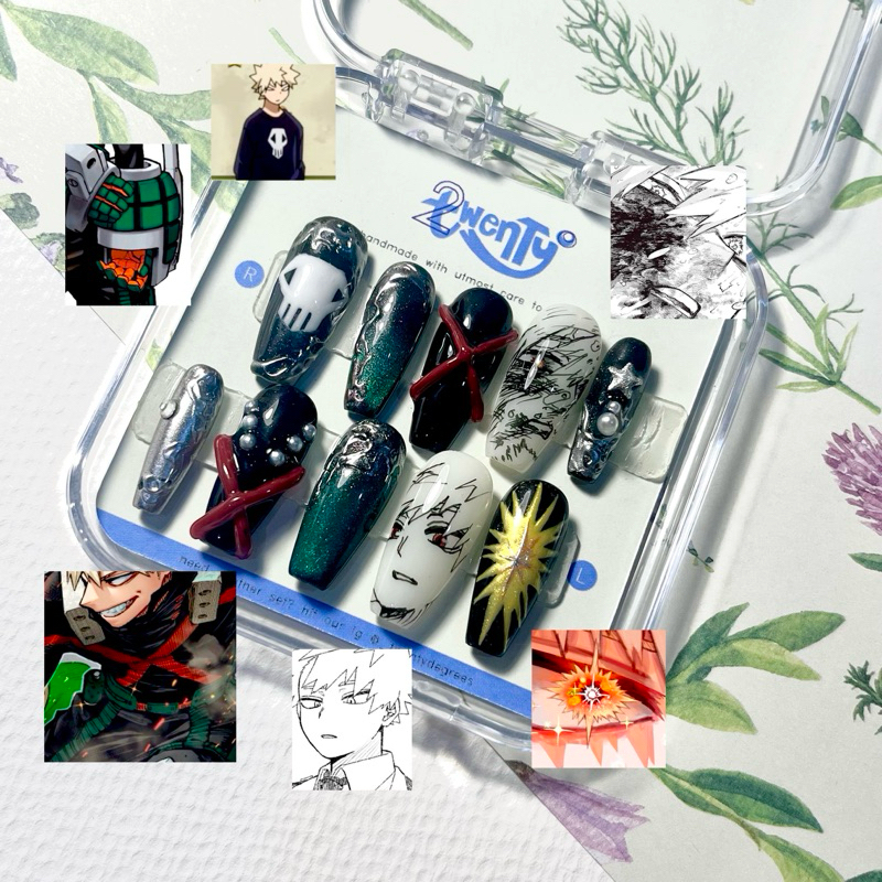 BAKUGO KATSUKI INSPIRED Press on Nails by Twenty Degrees | Press on Nail Anime Boku no Hero Academia My Hero Academia Kacchan 3D Nails Chrome Black and White
