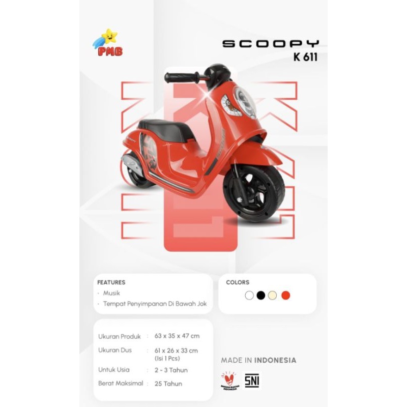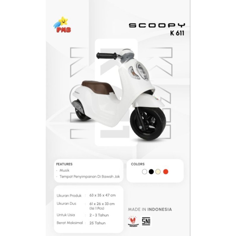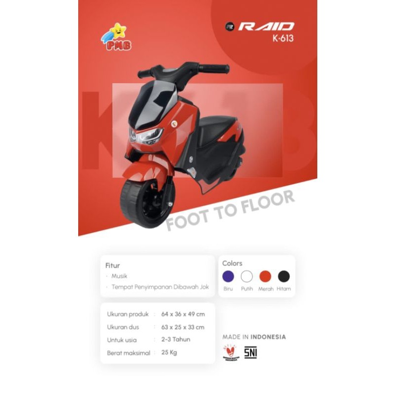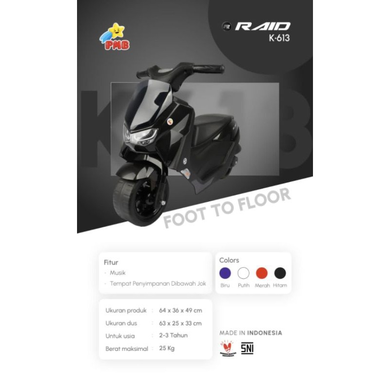 BALANCE BIKE ANAK MOTOR VESPA PMB RAID K613 K615 K611 SCOOPY K612 PCX IORA F105 F109 TM15 Mainan