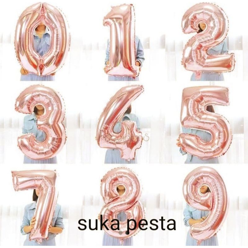 BALON ANGKA ROSEGOLD 80CM / BALON FOIL ANGKA 80CM / BALON ANGKA JUMBO