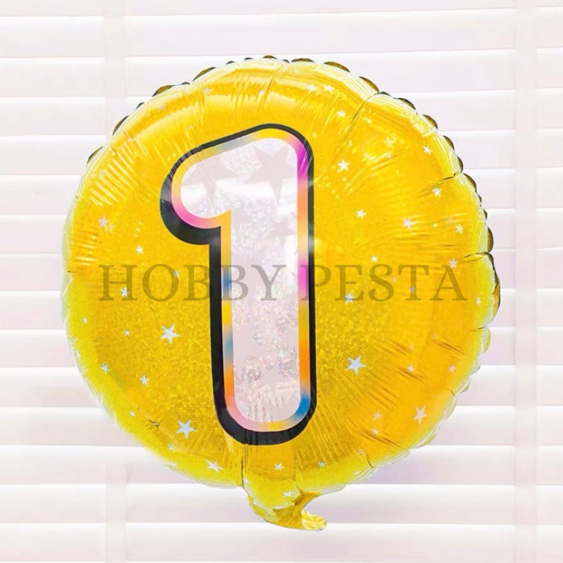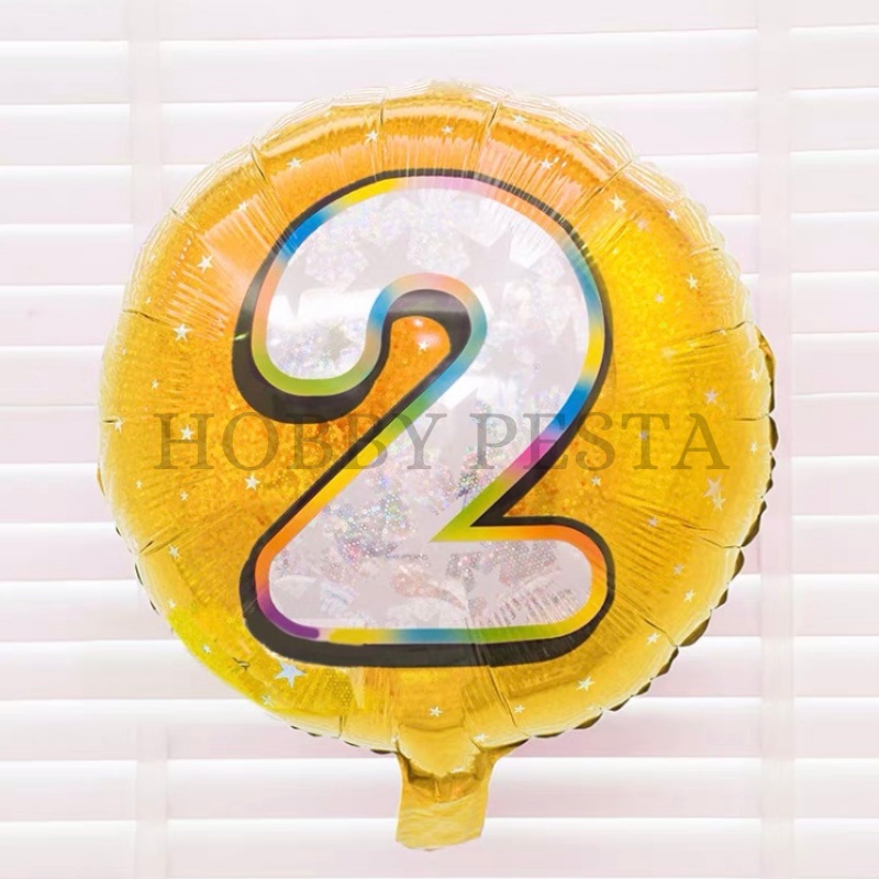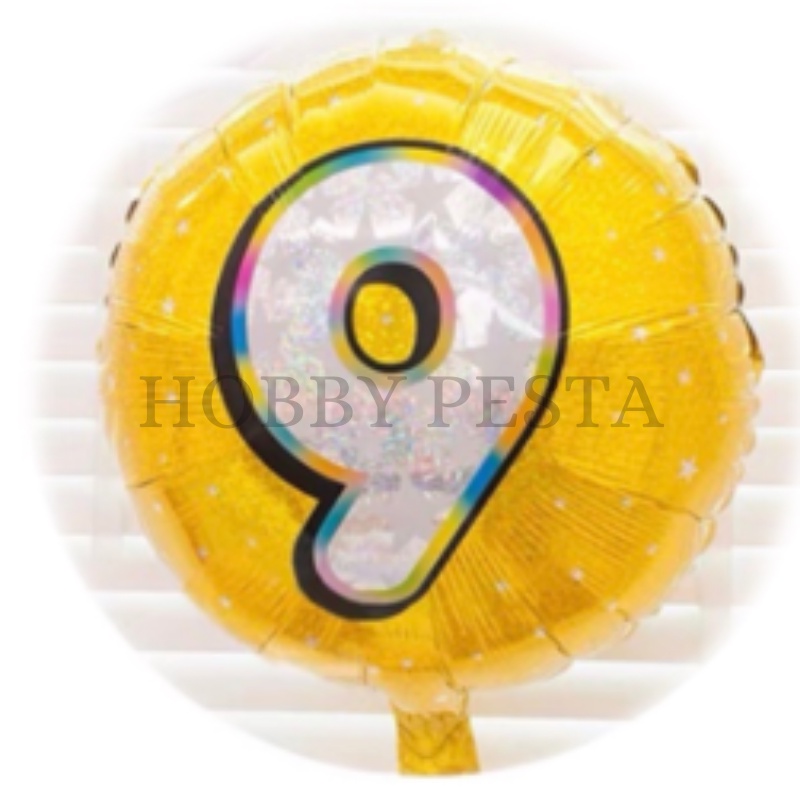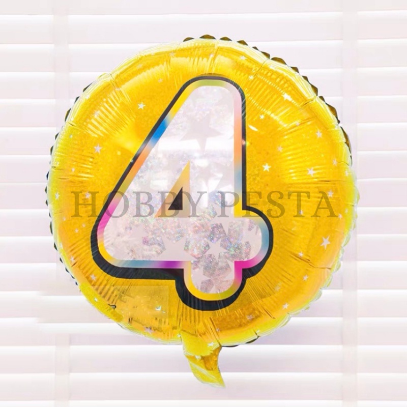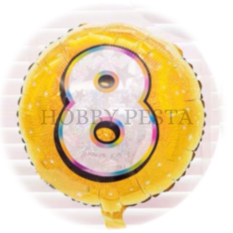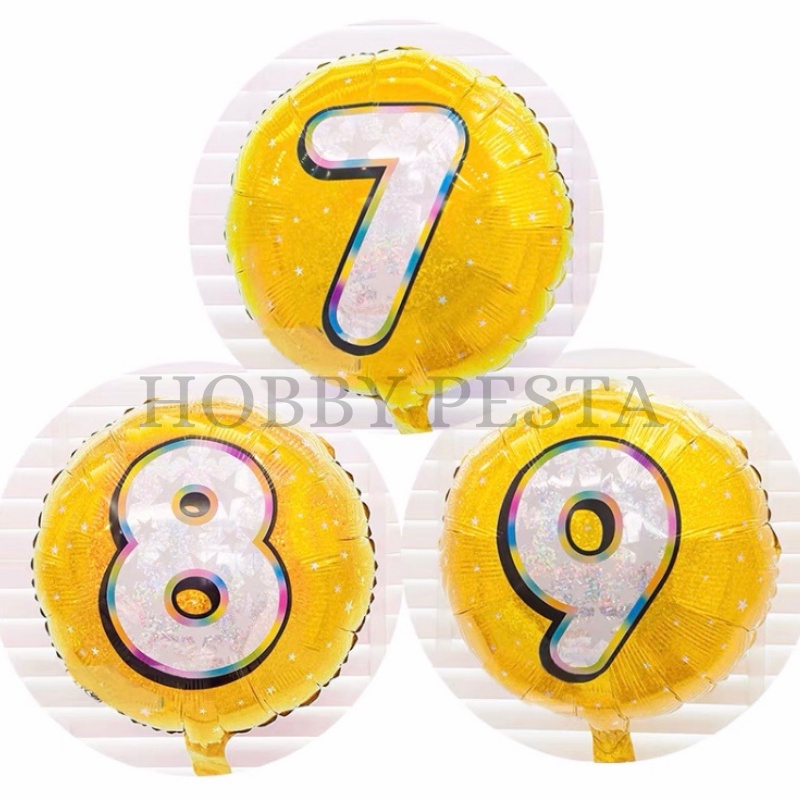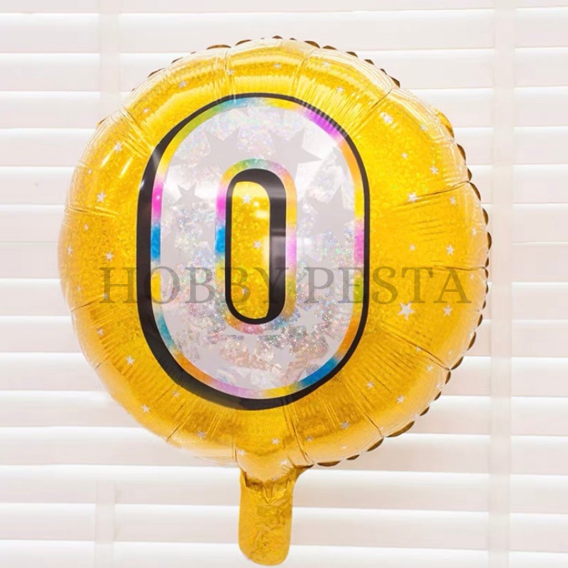 BALON BULAT HOLOGRAM GOLD MOTIF ANGKA 40CM / BALON ANGKA / BALON HOLOGRAM / BALON GOLD