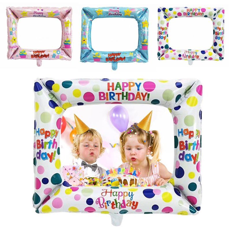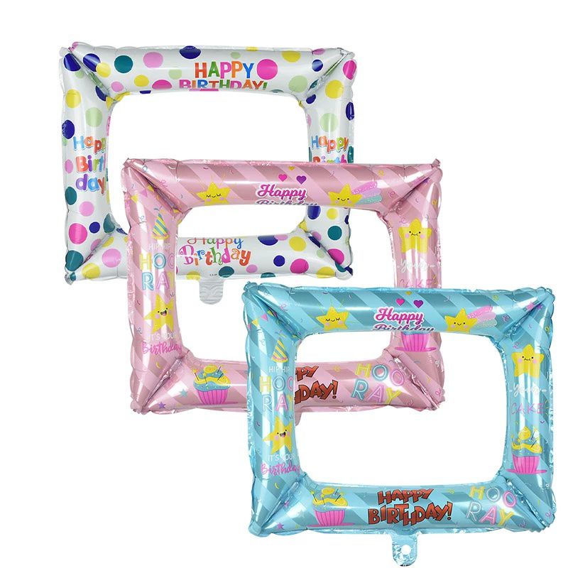 BALON FOIL FRAME BINGKAI FOTO KOTAK BIRU PINK PUTIH UNIK LUCU DEKORASI PESTA PROPERTI ULANG TAHUN