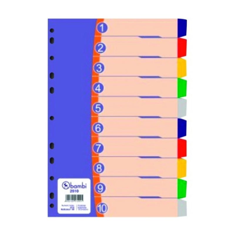 BAMBI Divider Plastic Folio 10 WARNA 2510 (Pembatas Binder Plastik F4)