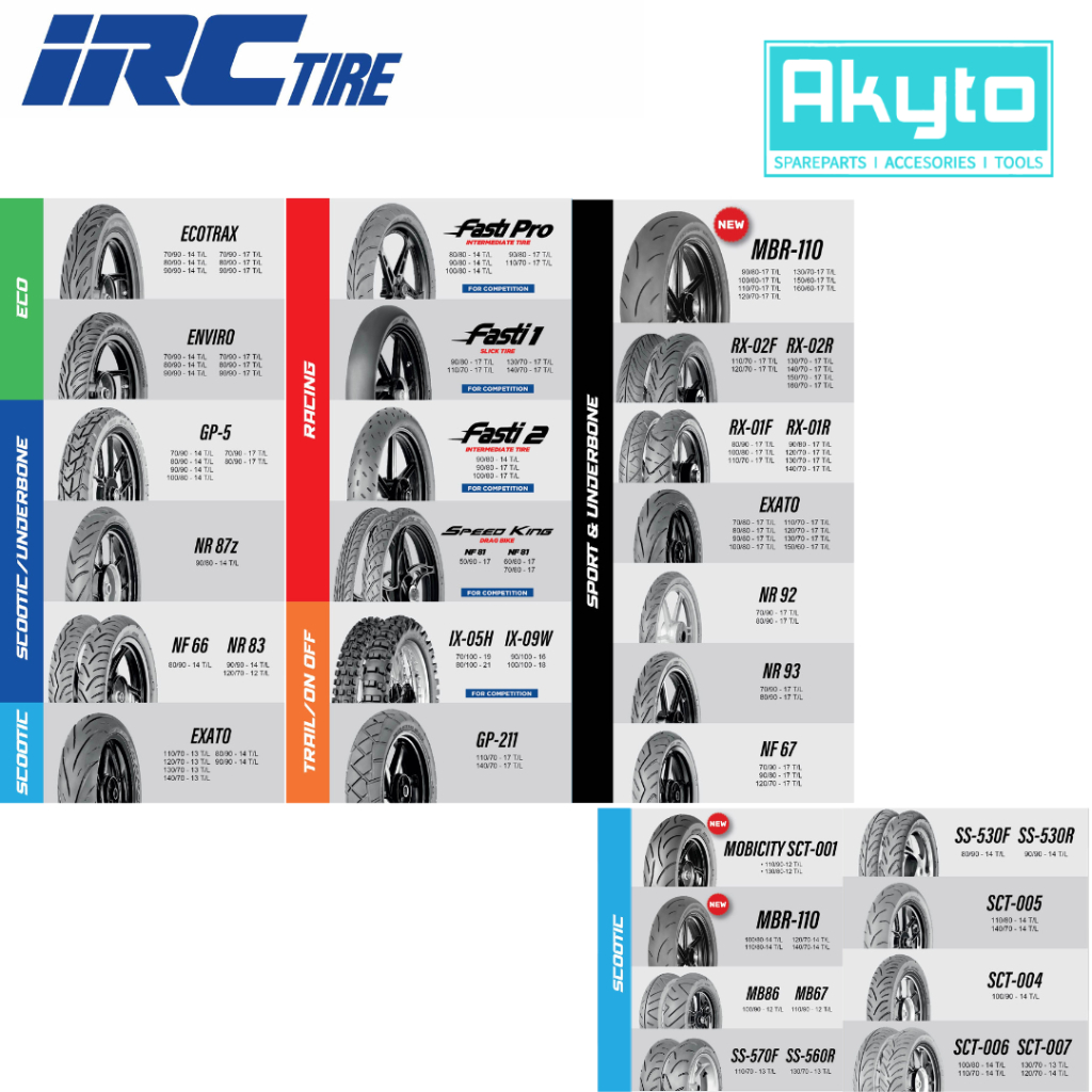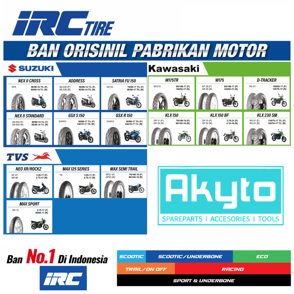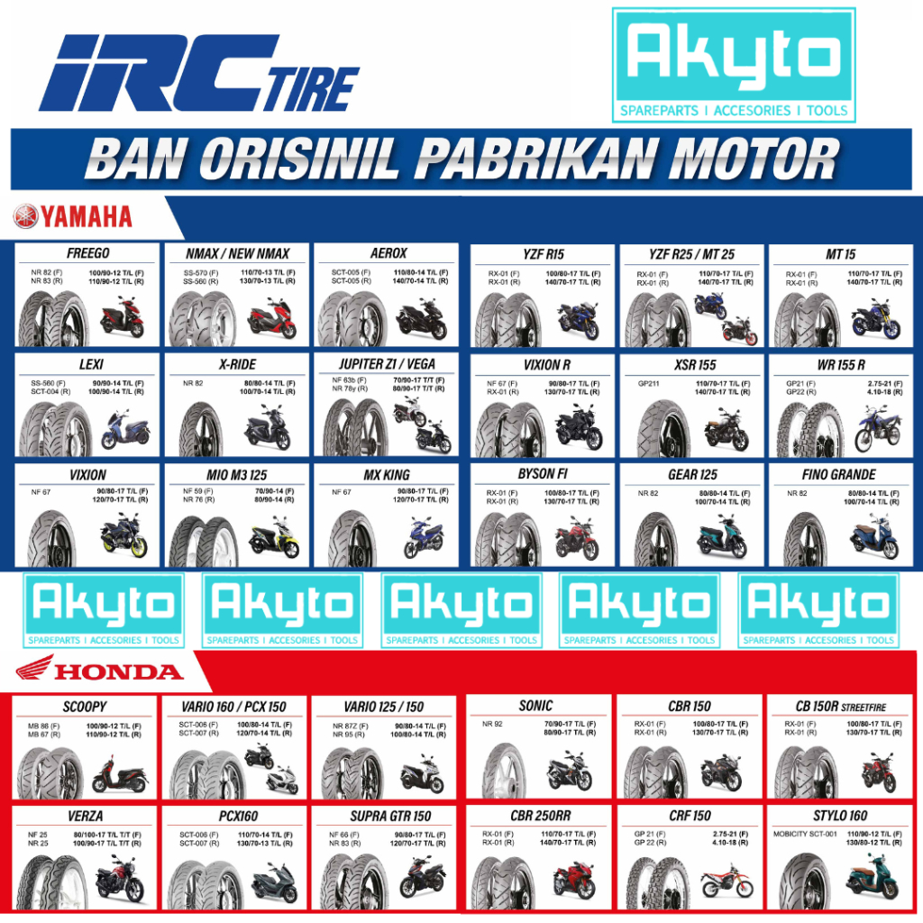 BAN IRC GP 5 RING 14 / BAN TUBELESS / BAN MOTOR R14 / BAN MOTOR MATIC METIK SCOOPY MIO J XRIDE FINO LEXI ADV PCX SOUL BEAT STREET VARIO 160 150 GENIO M3 MIO SMILE (70/90-14 , 80/90-14 , 90/90-14 , 100/80-14 ) GP5