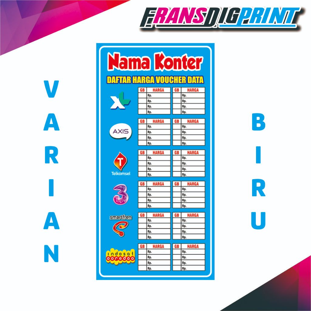 BANNER DAFTAR HARGA PAKET DATA , SPANDUK DAFTAR HARGA VOUCHER , DAFTAR HARGA PAKET DATA ALL OPERATOR