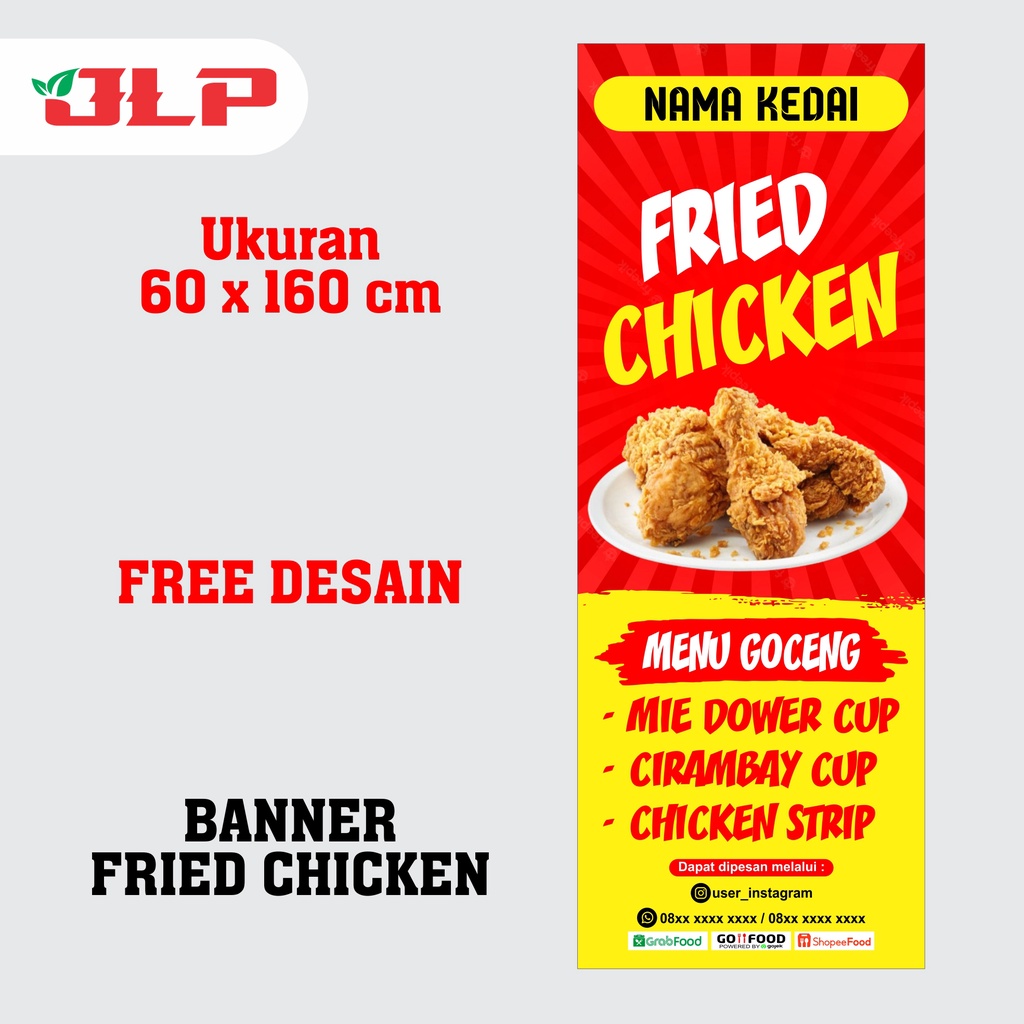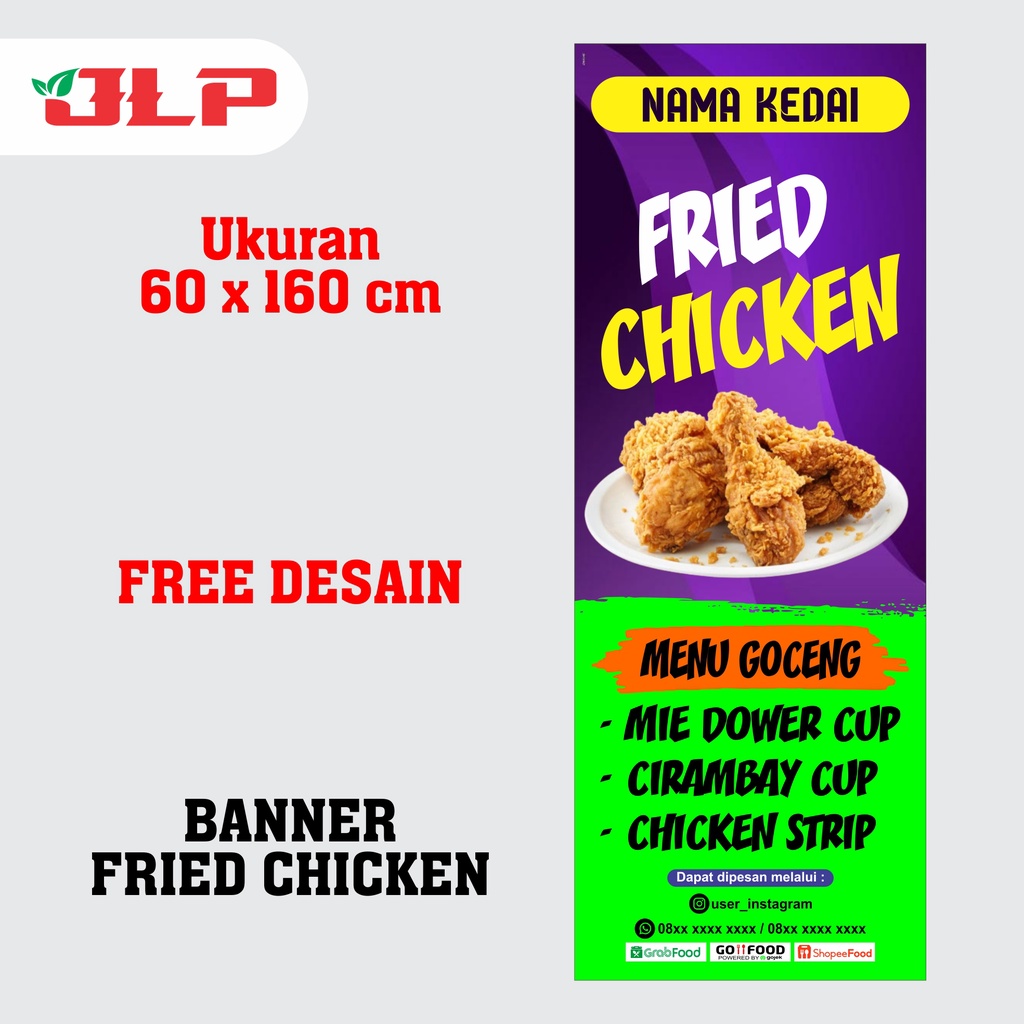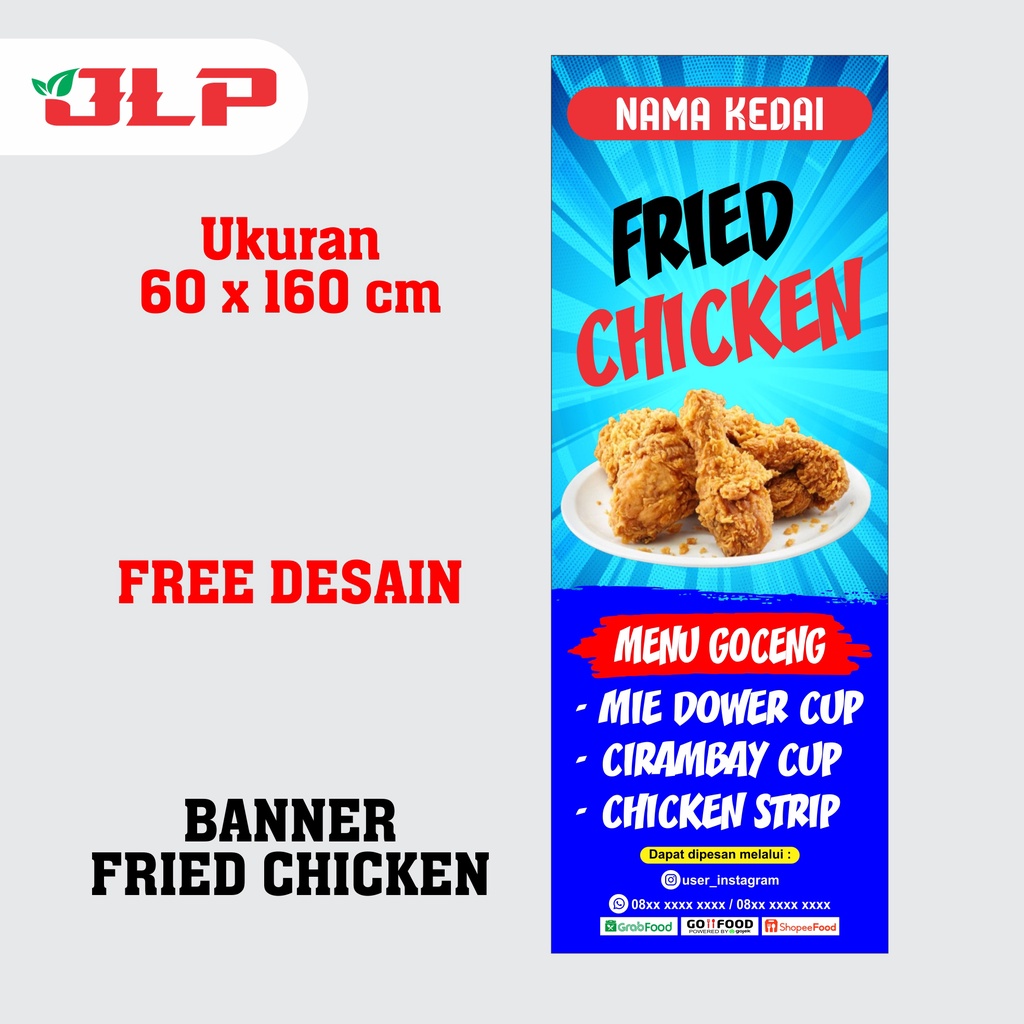 BANNER FRIED CHICKEN PAKET STAND BANNER / BANNER FRIED CHICKEN / SPANDUK FRIED CHICKEN / SPANDUK FRIED CHICKEN UKURAN 60 X 160 CM