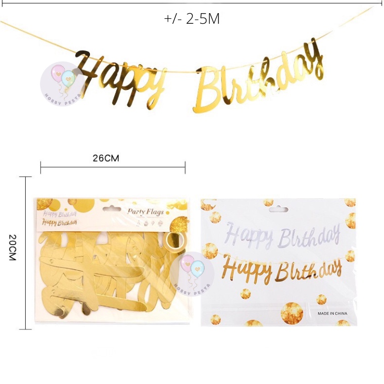 BANNER HAPPY BIRTHDAY LATIN METALIK / BANNER HBD SAMBUNG / BUNTING FLAG HBD