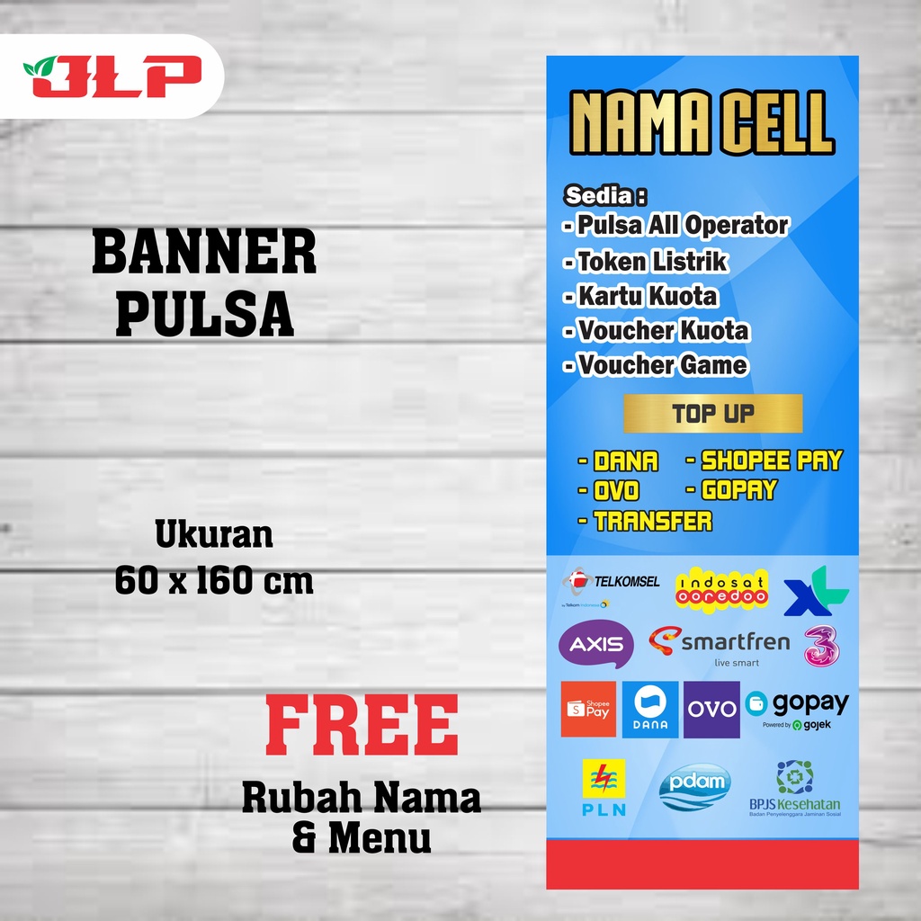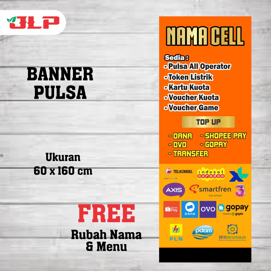 BANNER KONTER PULSA UKURAN 60 X 160 CM / BANNER KONTER PULSA, TOKEN LISTRIK, BPJS, PEMBAYARAN