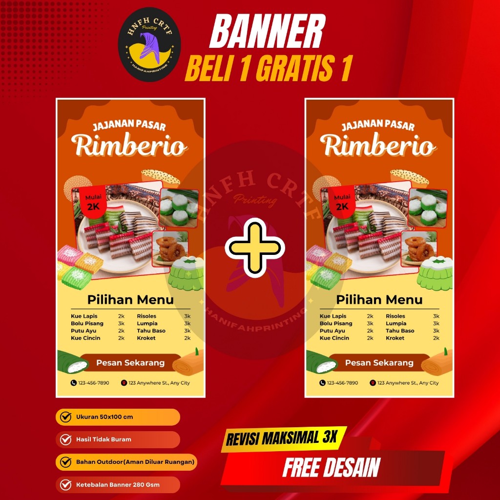 BANNER MAKANAN JAJANAN PASAR l BANNER UNTUK STANDING 2 SISI l BANNER PROMOS JAJAN TRADISIONALI l BANNER JAJAN TRADISIONAL l HANYA BANNER l BANNER BELI 1 GRATIS 1