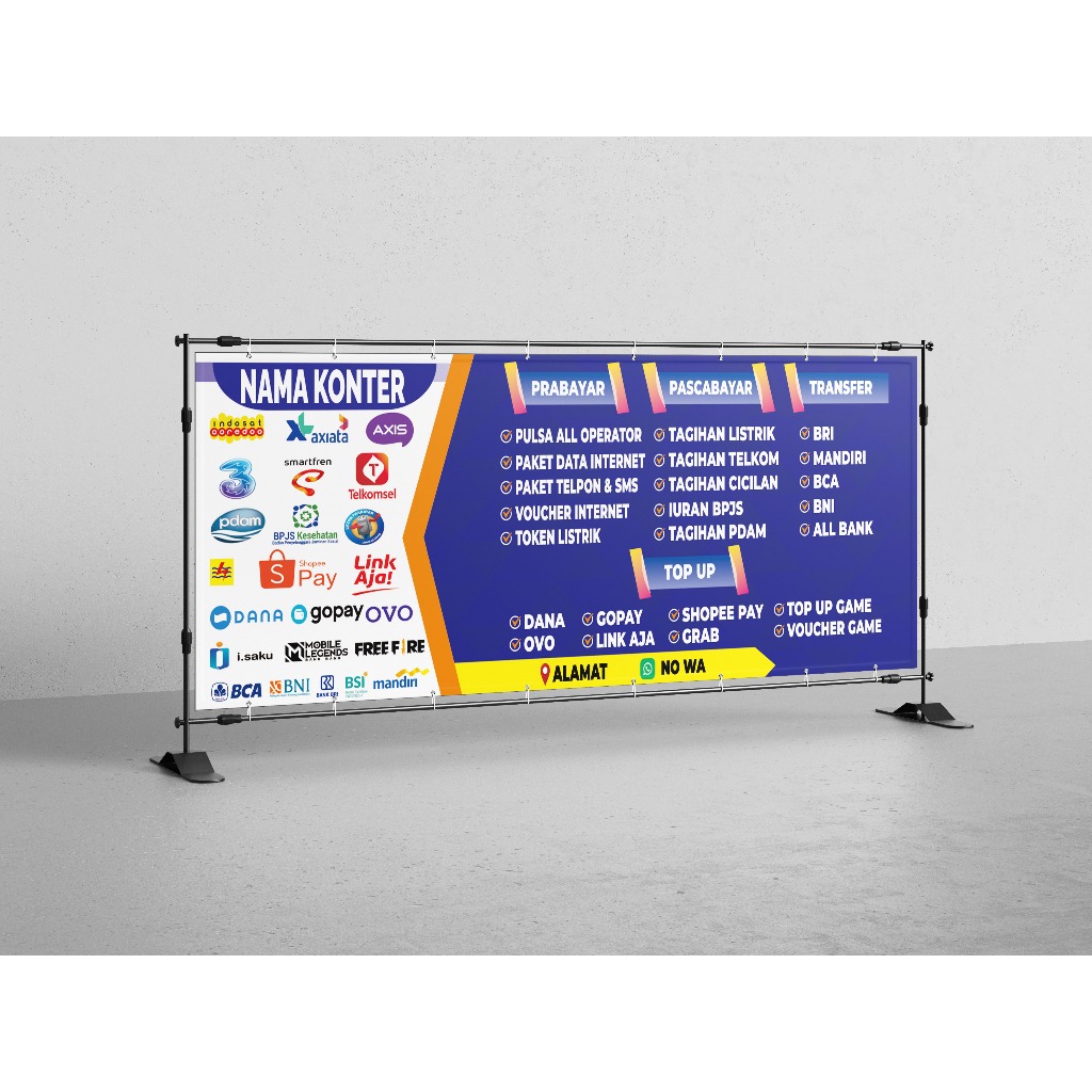 BANNER SPANDUK KONTER PULSA CUSTOM/HIASAN KONTER PULSA/PERLENGKAPAN KONTER PULSA