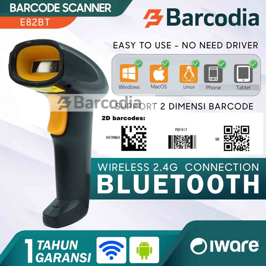 BARCODIA Barcode Scanner Iware 1D 2D USB Bluetooth Wireless