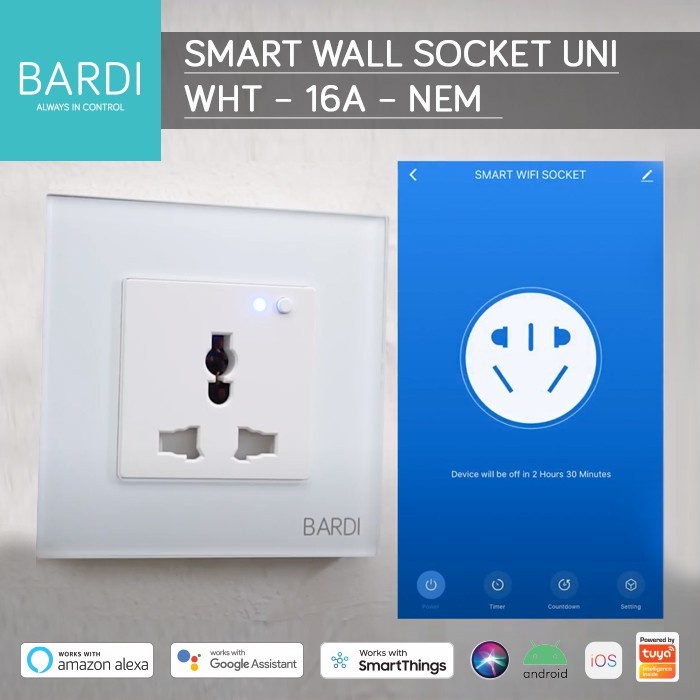 BARDI Smart Wall Socket UNI Stop Kontak Smart Home For Google 'n Alexa