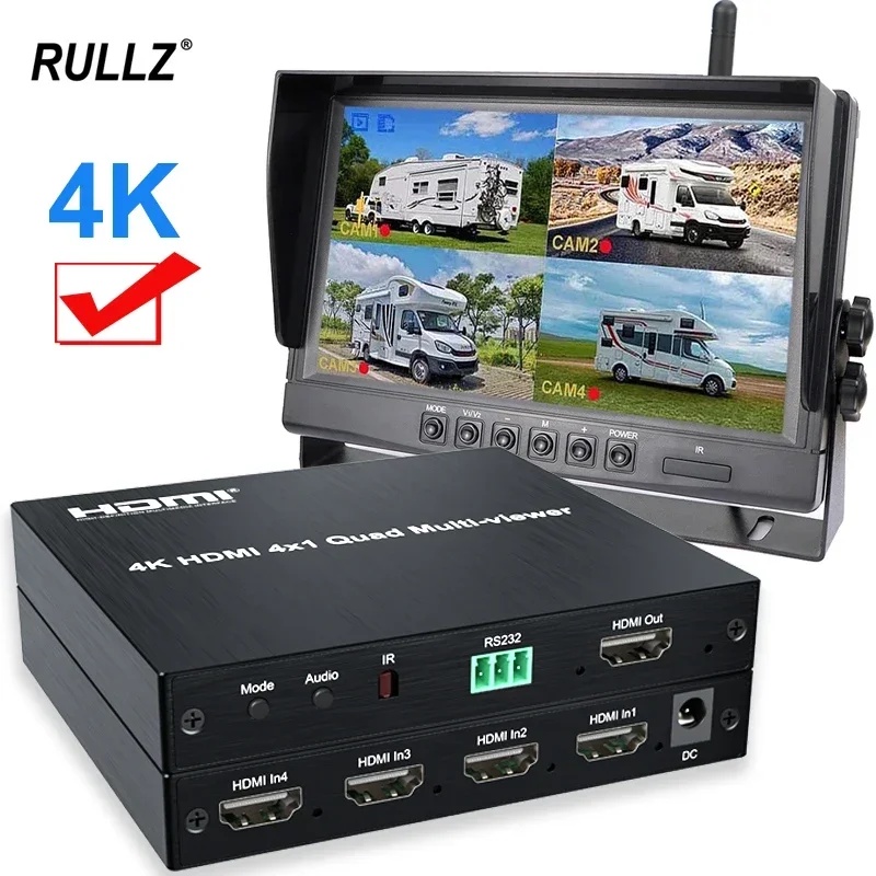BARU 4k HDMI Quad Multi-viewer 1080P 60Hz 4 Channel Split Screen HDMI Switch 4x1 Multiviewer for PS4 Camera Laptop PC To TV Monitor