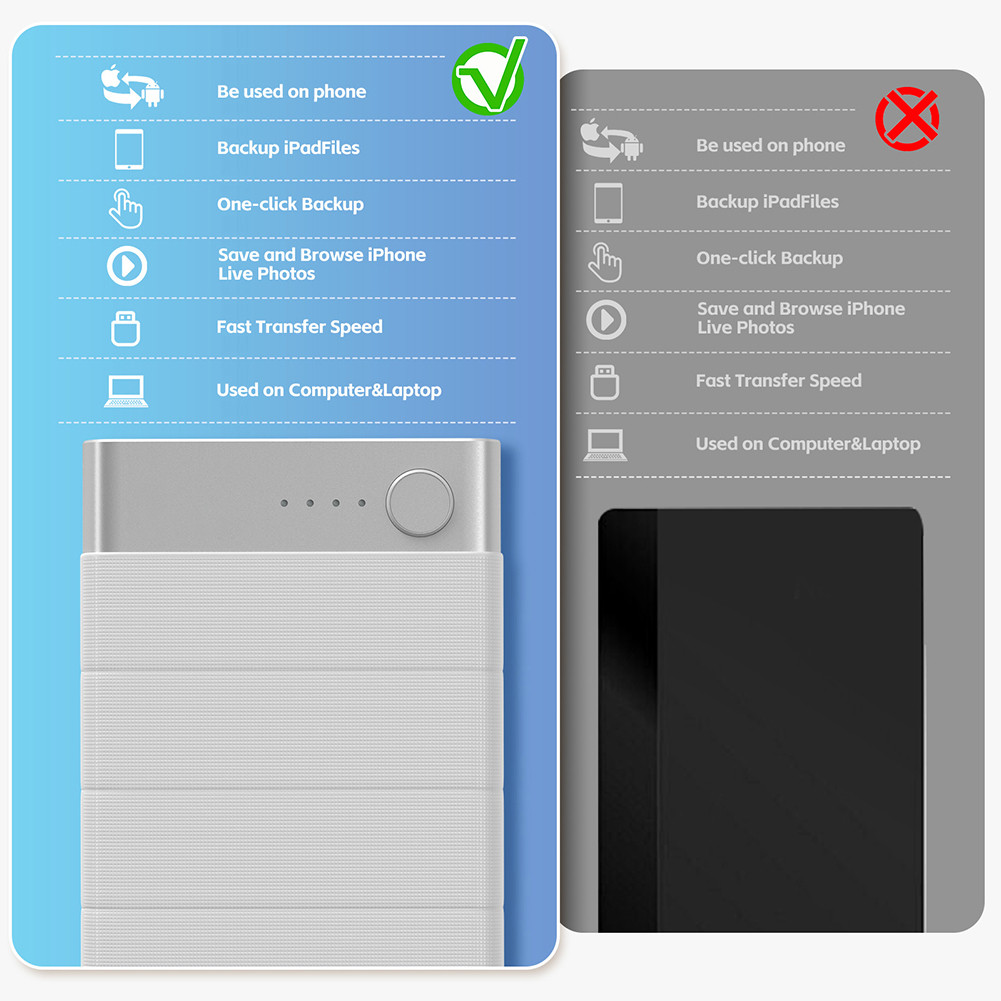 BARU 5000mAh External Hard Drive Photo Stick 500G/1TB Power Supply Portable External Hard Drive Storage Device for Android & iOS