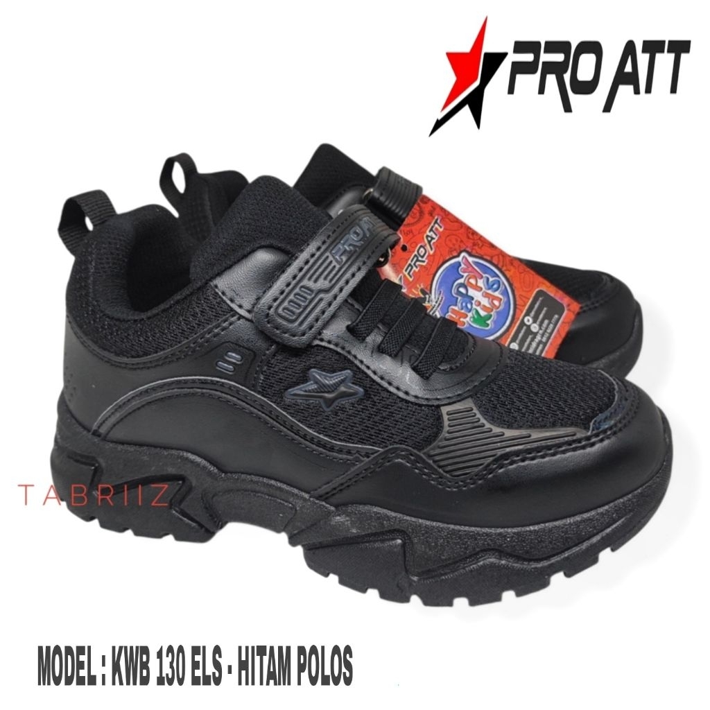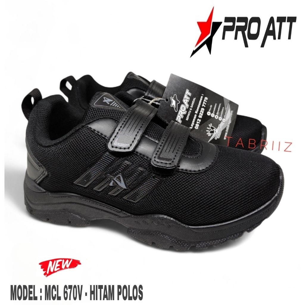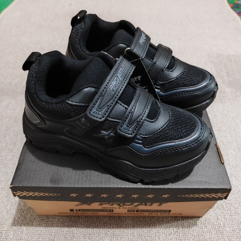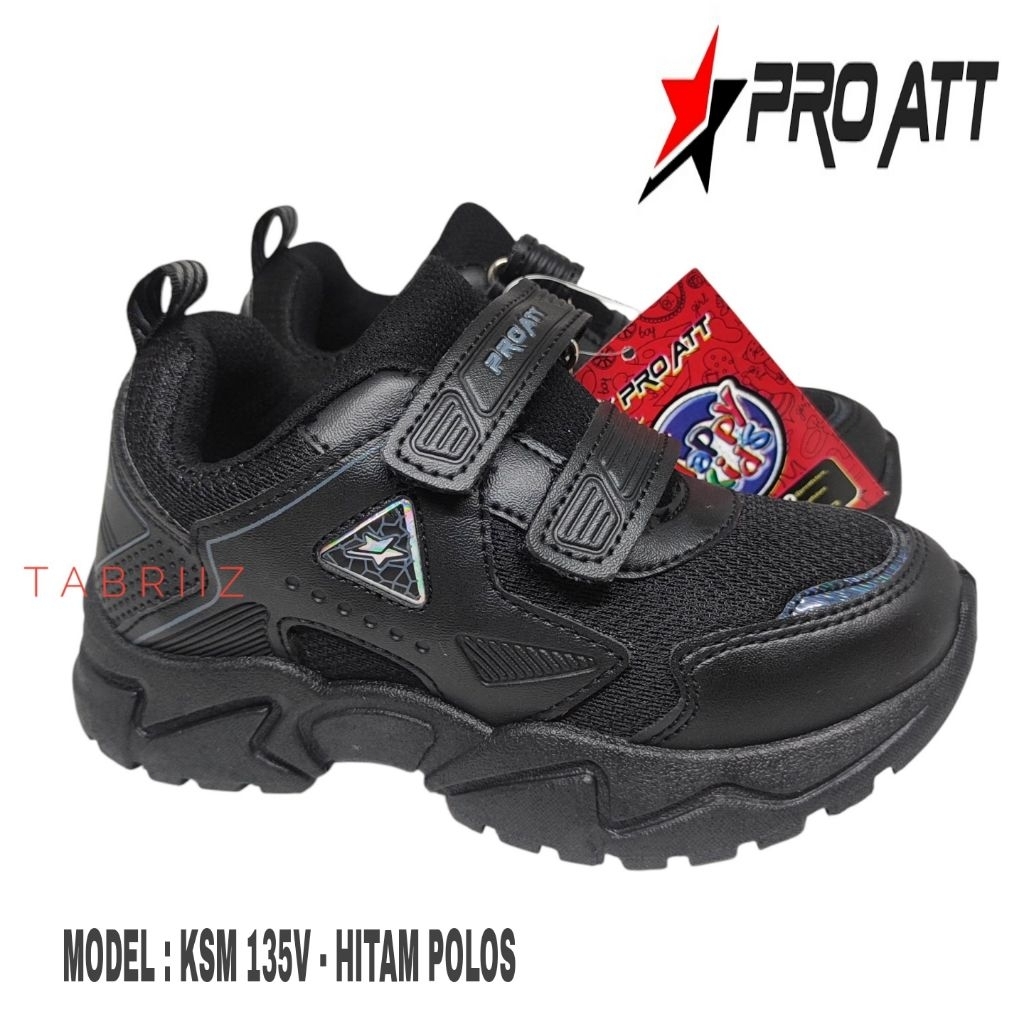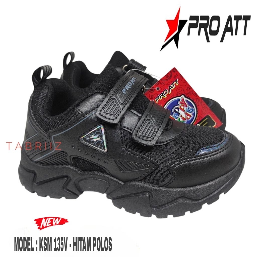 Sepatu PRO ATT HITAM POLOS 28-33 PRO ATT KIM 010 KWB 130 KSM 135 Sepatu Anak TK PAUD SD Sepatu Sekolah Anak Cowok Cewek Model Perekat - 100% ORIGINAL