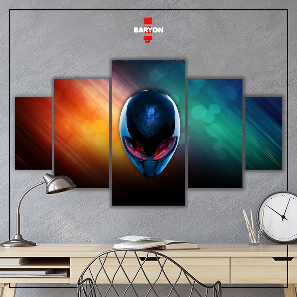 BARYON Hiasan Dinding ALIENWARE 1 Set Wall Decor Poster Kayu Pajangan Dekorasi Kamar GAMERS 5pcs