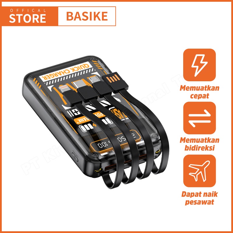 BASIKE Powerbank 20000 mah Fast Charging Murah Mini LCD with Kabel Data Type C Micro USB Lightning