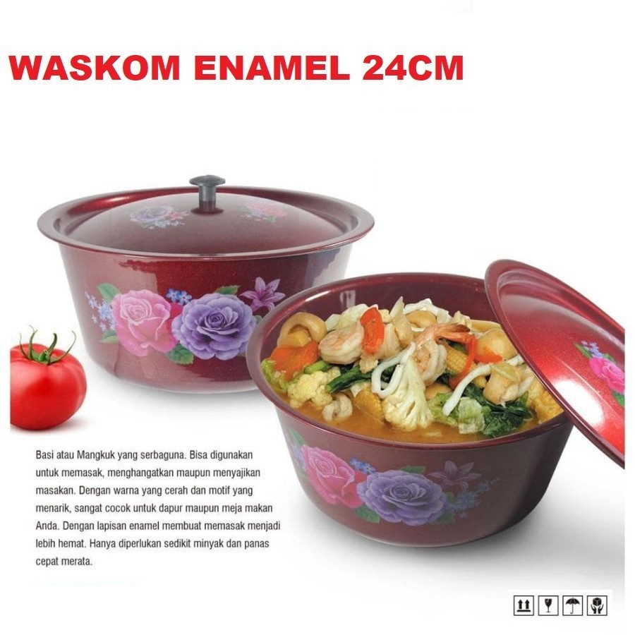 BASKOM TUTUP ENAMEL BASKOM MOTIF 24CM WASKOM WADAH