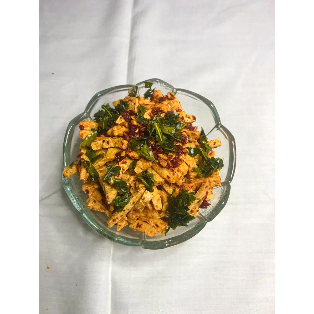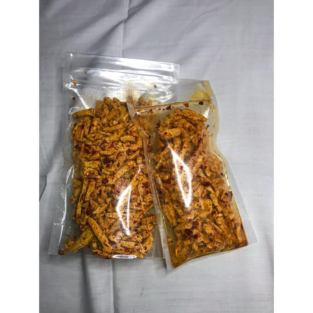 BASRENG 100gr / BAKSO GORENG / BASO GORENG BOJOT Cemilan Basreng Stick Baso Goreng Pedas Daun Jeruk Instant Halal Kemasan Pouch Netto 100 Grm