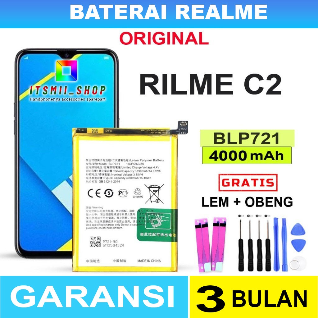 BATERAI BATRE Op REALME C2 BLP721 ORIGINAL ((FREE OBENG+LEM))