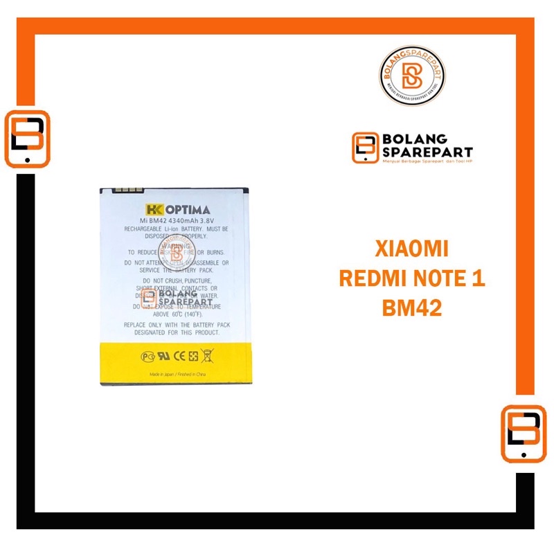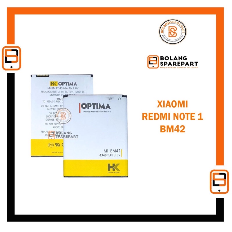BATERAI BATRE XIAOMI REDMI NOTE 1 BM42 HK OPTIMA DOUBLE IC