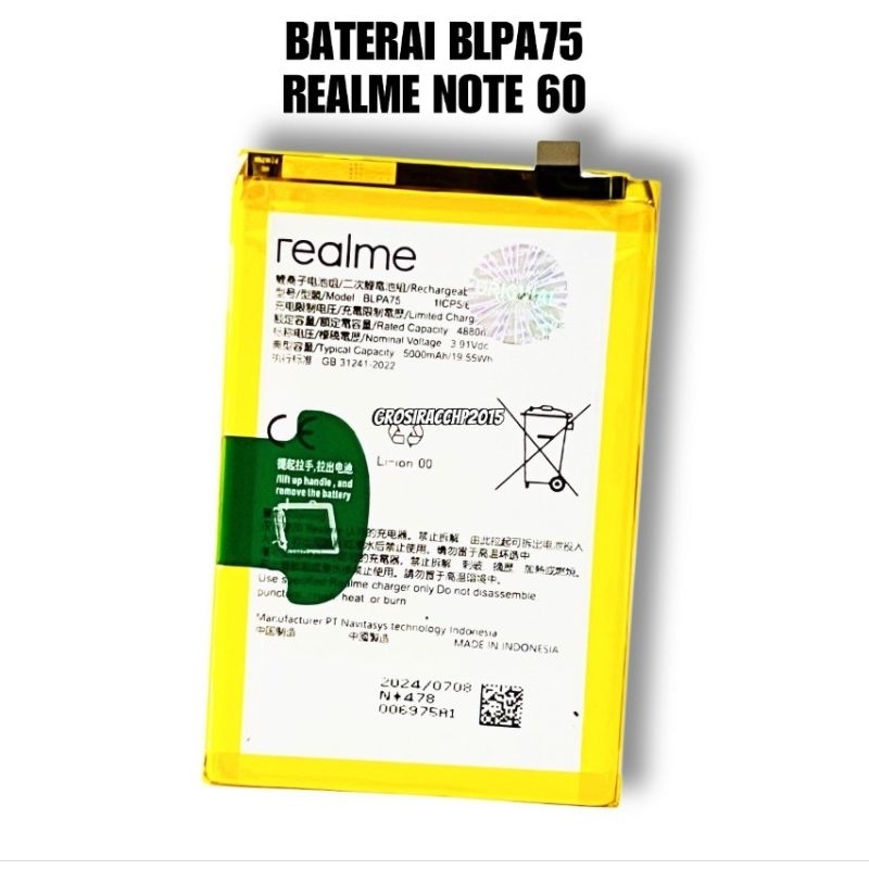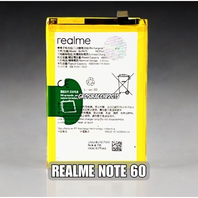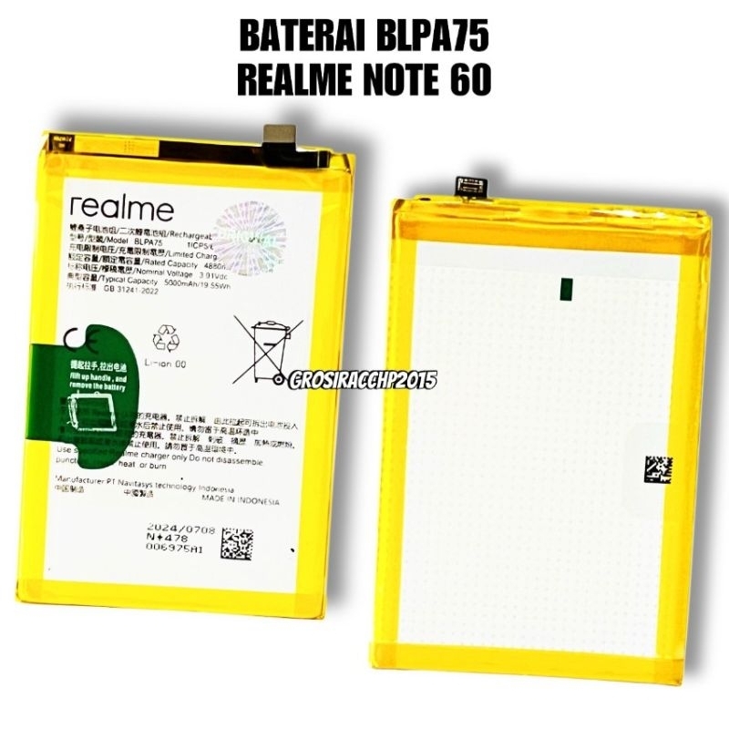 BATERAI BLPA75 5000mAh FOR REALME NOTE 60 GARANSI 1 BULAN