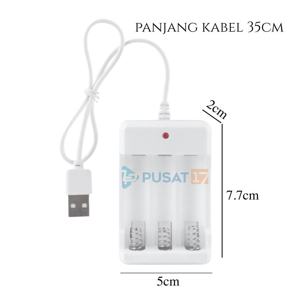 BATERAI CAS AA 1000mAh AAA 600mAh BATTERY RECHARGEABLE CHARGER 3 SLOT USB AA/AAA BATRE ISI ULANG