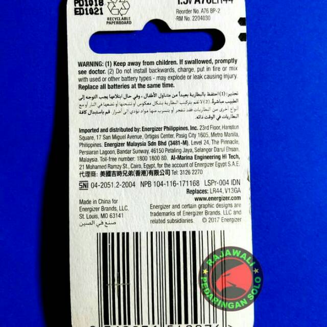 BATERAI LR44/A76 ENERGIZER ORIGINAL