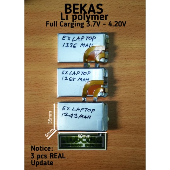 BATERAI /li-Polimer/BEKAS COPOTAN LAPTOP / BATERAI BEKAS MURAH BERKUALITAS ORIGINAL / REAL/3pcs