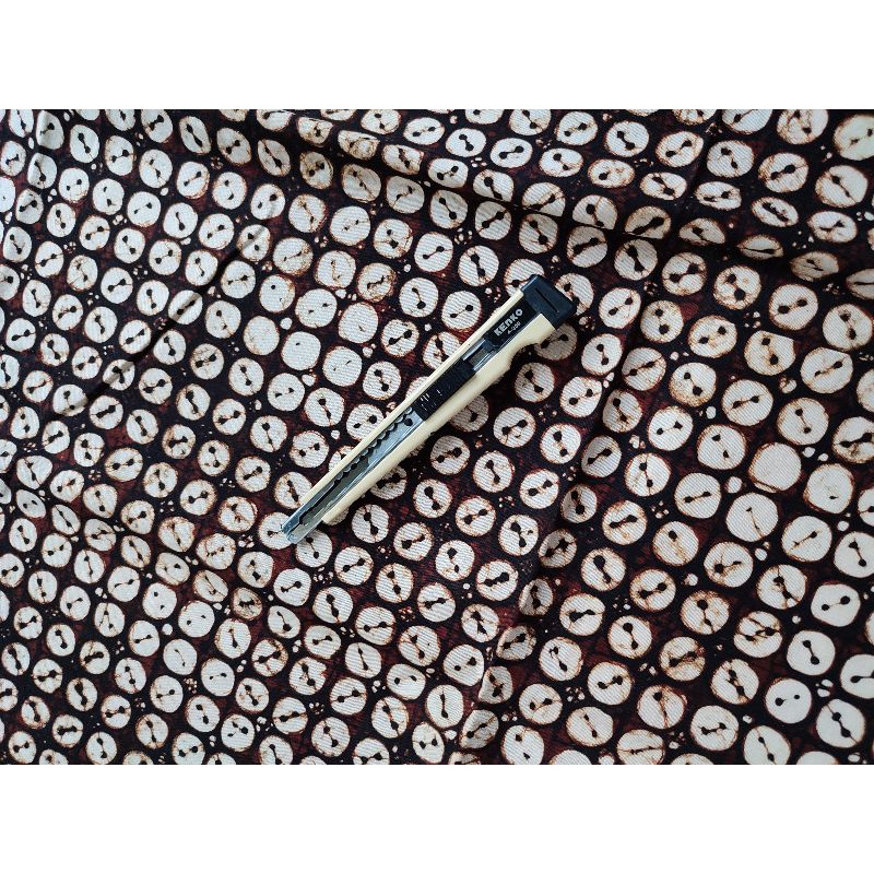 BATIK CAP KAIN KATUN PRIMA SUPER MOTIF KAWUNG PARANG KANCING WARNA MERAH COKLAT SOGAN HITAM KUNING BUKAN TULIS