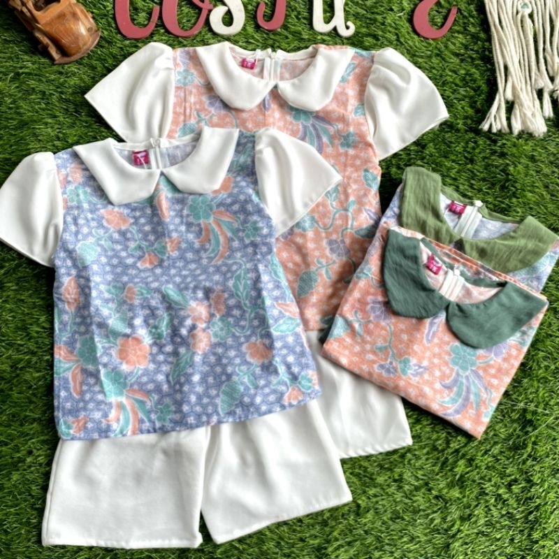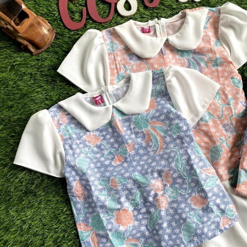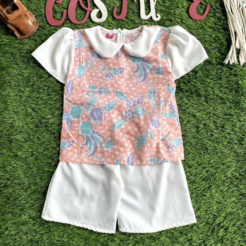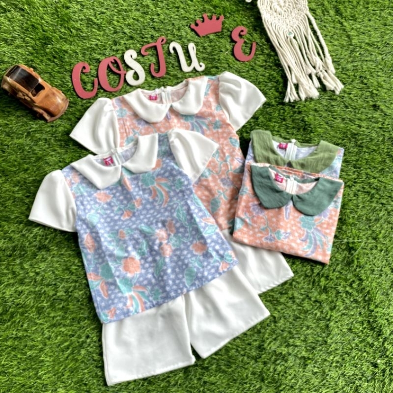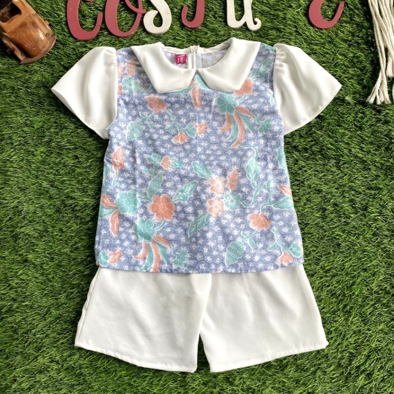 Batik Costume Setelan Batik Mireya Kombinasi Bunga Mix Polos Putih Nyaman Di Pakai