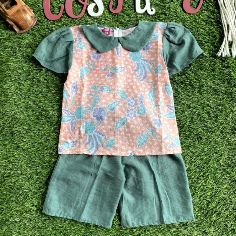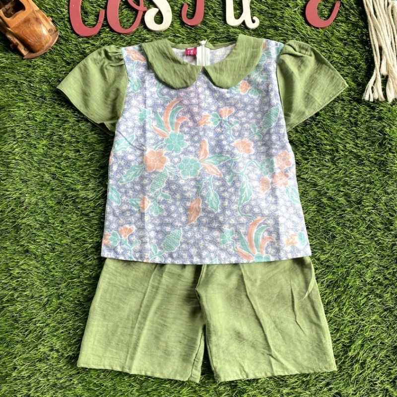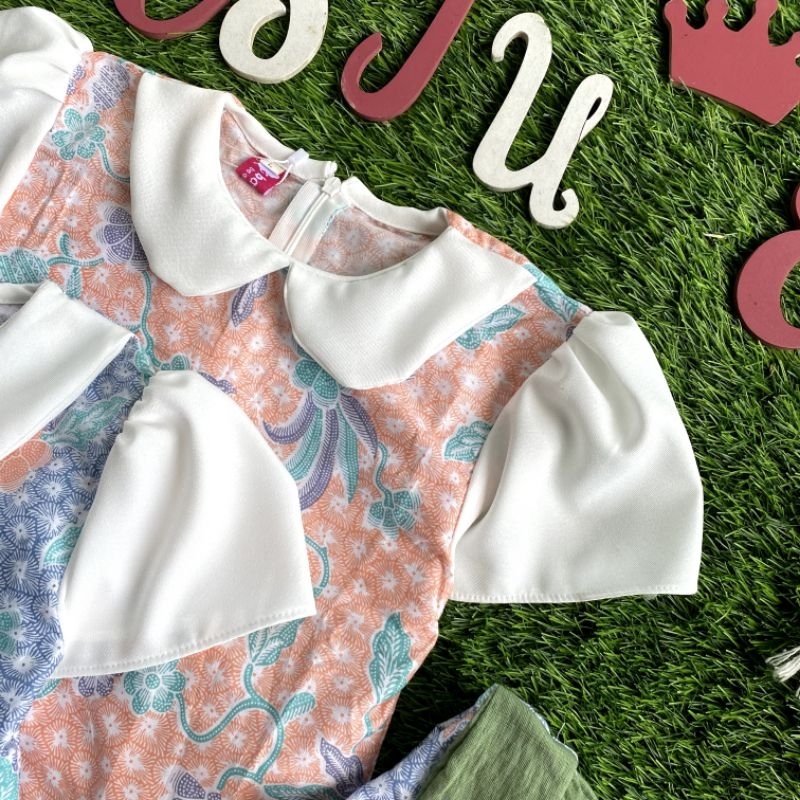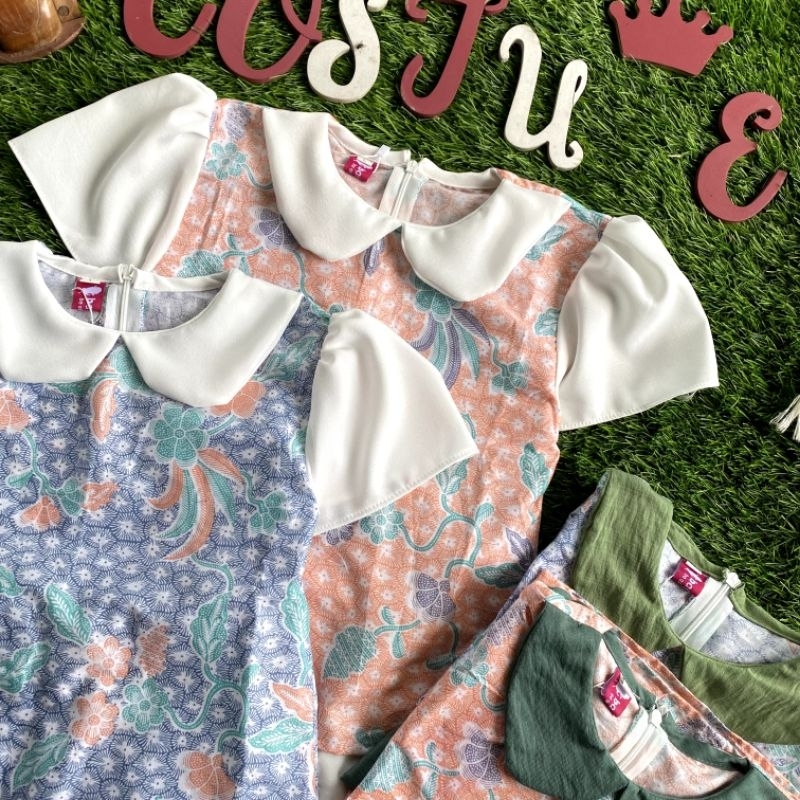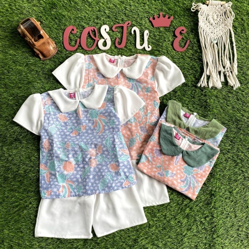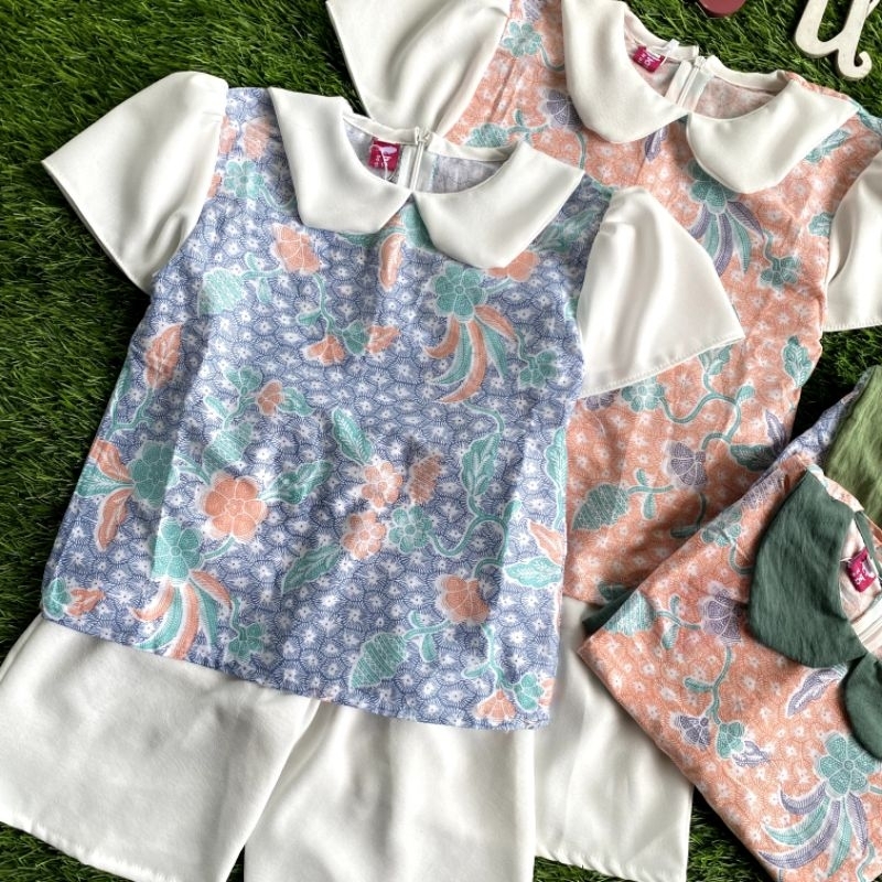 Batik Costume Setelan Batik Mireya Kombinasi Bunga Mix Polos Putih Nyaman Di Pakai