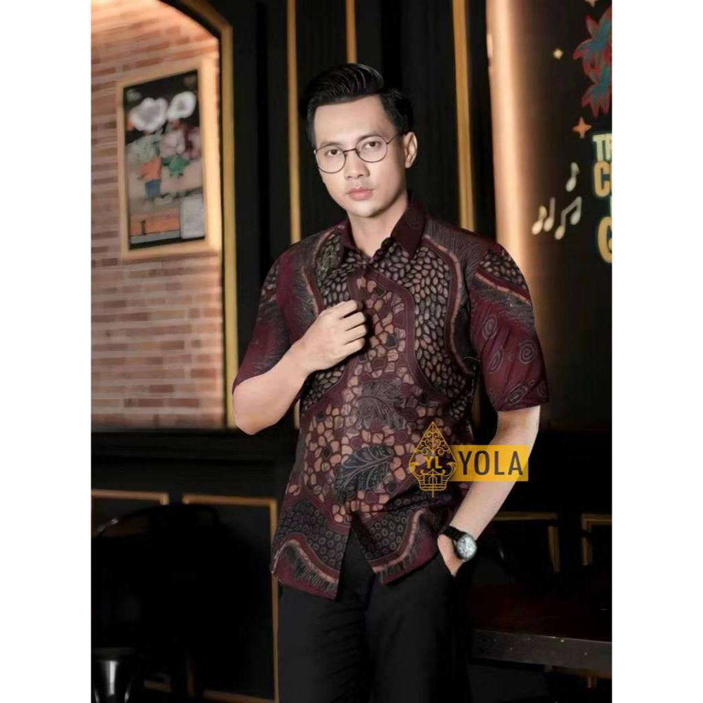 BATIK PRIA LENGAN PENDEK WARNA MERAH MAROON TERBARU BATIK WARNA ABU TERBARU MODERN REGULER