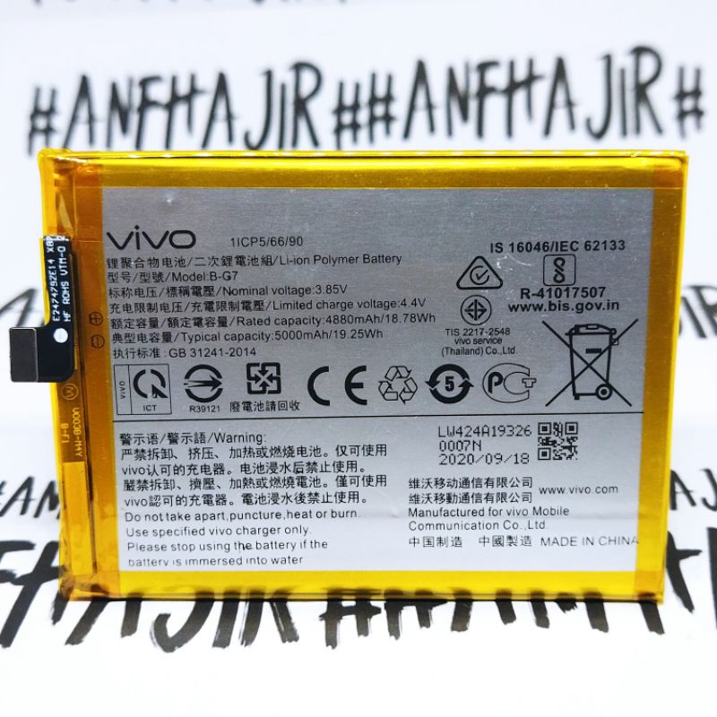BATRE BATREI BATERAI BATTERY VIVO B-G7 BG7 BG 7 Y12 Y 12 Y15 Y 15 Y17 Y 17 Z1 Z 1 PRO (5000 mAh) ORIGINAL BATRAI HANDPHONE