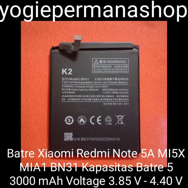 BATRE BATREI BATERAI BATTERY XIAOMI REDMI NOTE 5A 5 A MI5X MI 5X MIA1 MI A1 BN31 BN 31 (3000 mAh)