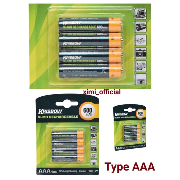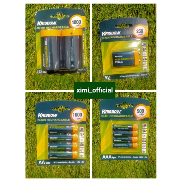 BATTERY RECHARGEABLE baterai rechargable KRISBOW AA AAA C D 9V 3,7V