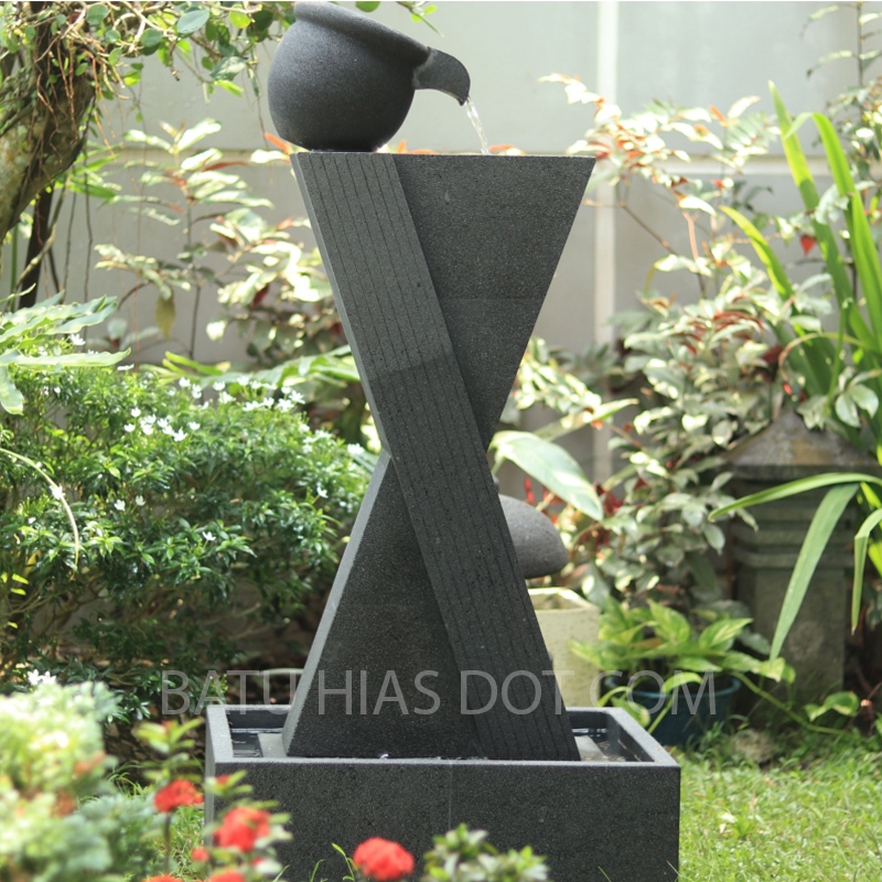 BATU HIAS Air Mancur Taman Hiasan Dekorasi Unik Minimalis Batu Merapi X Stand