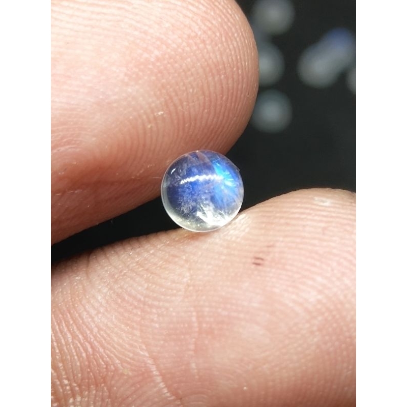 BATU KECIL Natural Rainbow Moonstone Biduri Laut Blue Flash Kilau Biru Asli 5x5 mm Round Cabochon