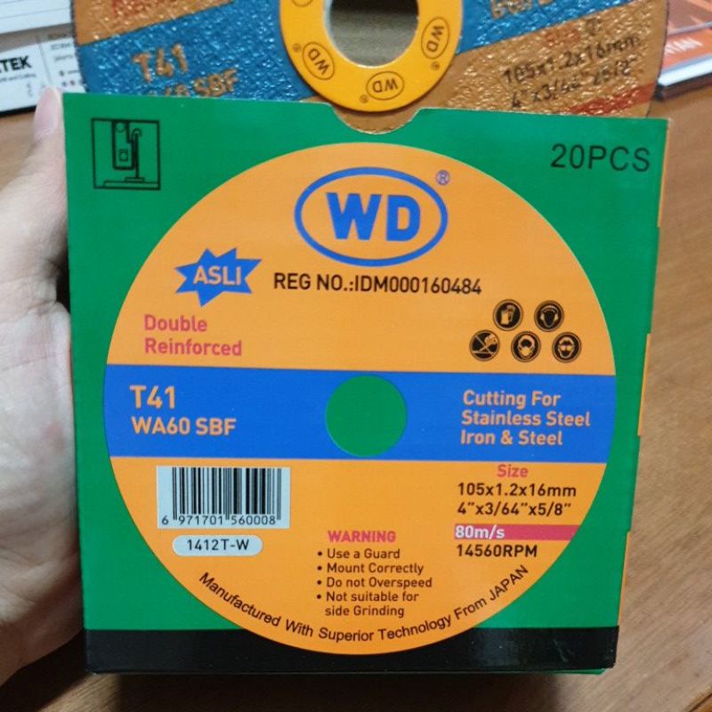BATU POTONG BESI WD 4X1MM / CUTTING WHEEL WD 4" X 1MM / BATU POTONG MERK WD 4 INCH