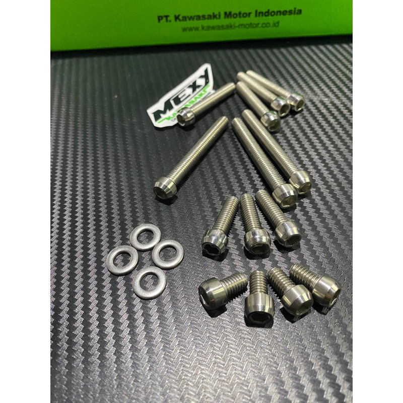 BAUT BAUD BAK MESIN KANAN KIRI STANLES BAUT L SATANLES ORIGINAL ANTI KARAT MESIN NINJA R NINJA SS NINJA RR OLD NINJA RR NEW KAWASAKI