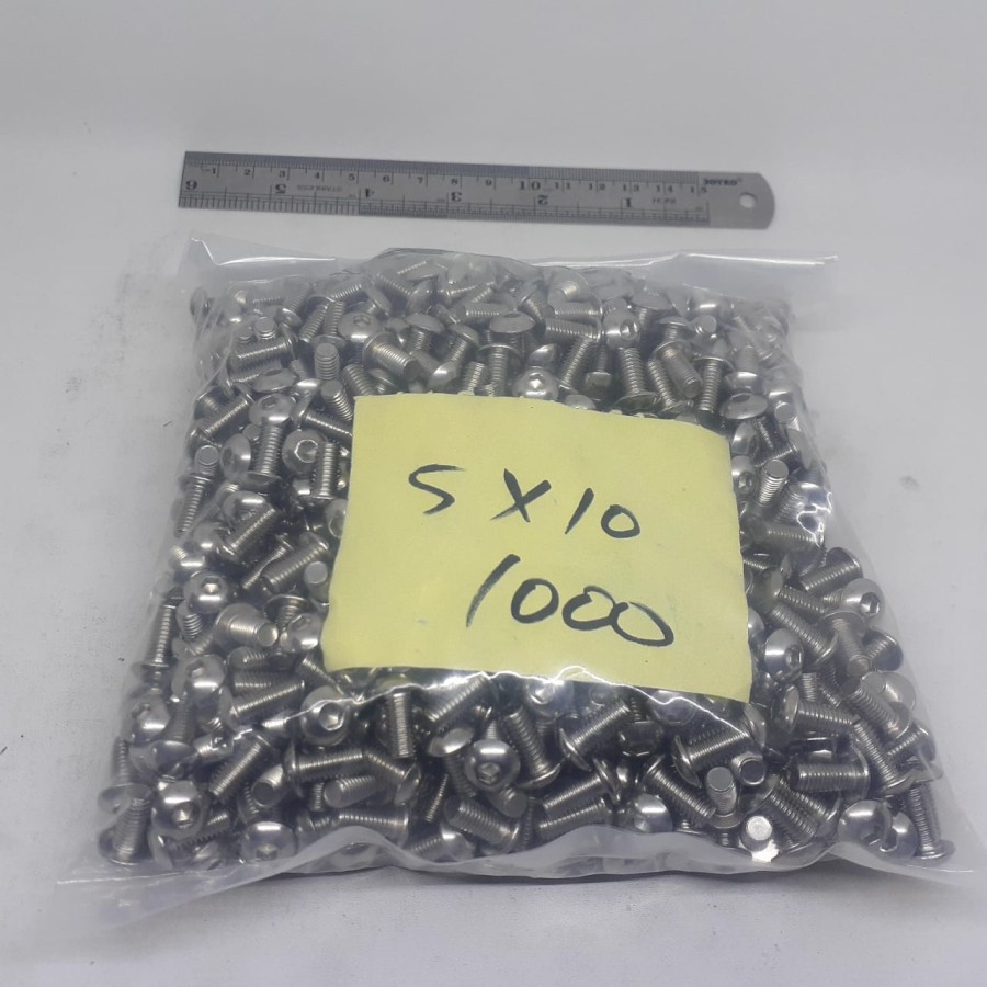 BAUT L BUTTON M5X10 STAINLESS M5 X 10 SS SUS 304 KUNCI L3 L 3 BAUT 8 PANJANG 1CM 1 CM BUTTON HEAD SCREW 10MM ROTOR CAKRAM SEPEDA