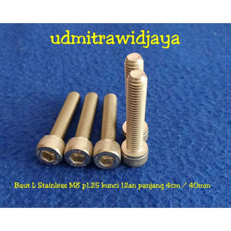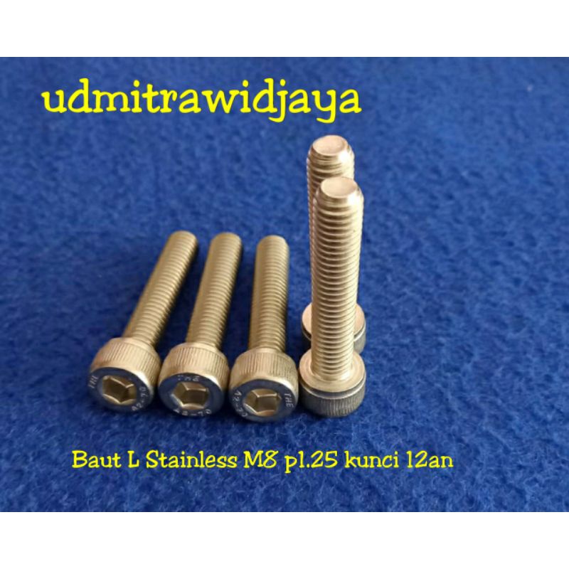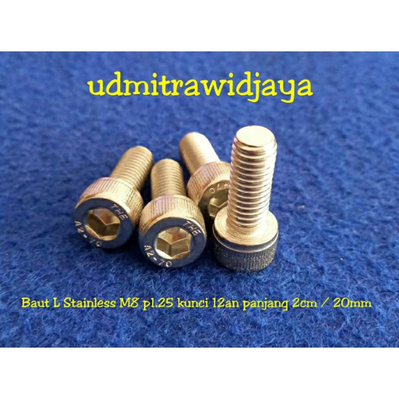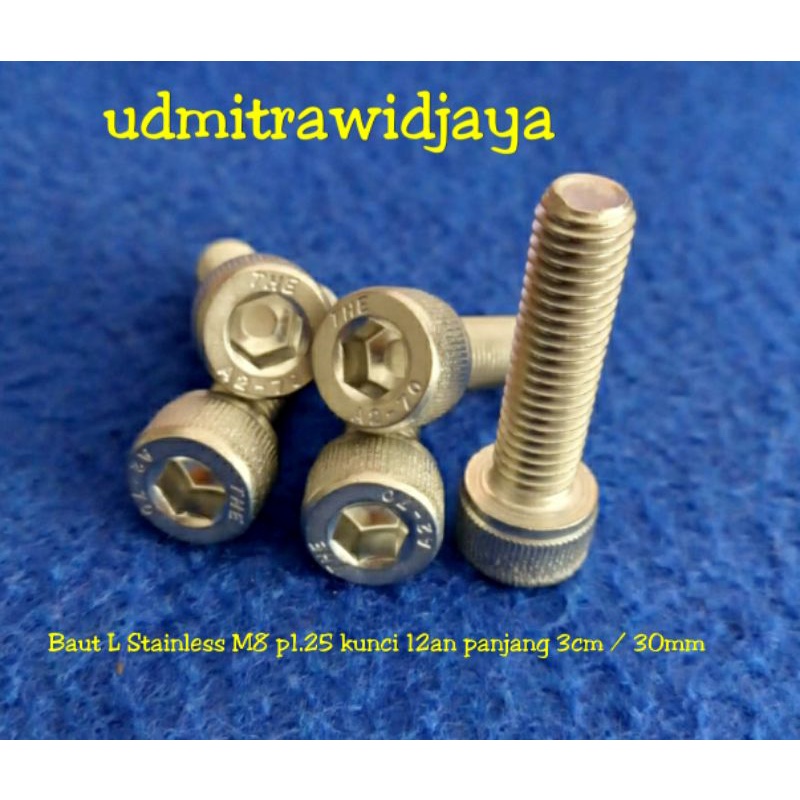BAUT L STAINLESS STELL A2-70 304 baut 12an baut L ss M8 diameter 8 mm p1.25 baut kunci 12 13 baut fulldratt stenlis baut pangkon cnc baut probolt Ss
