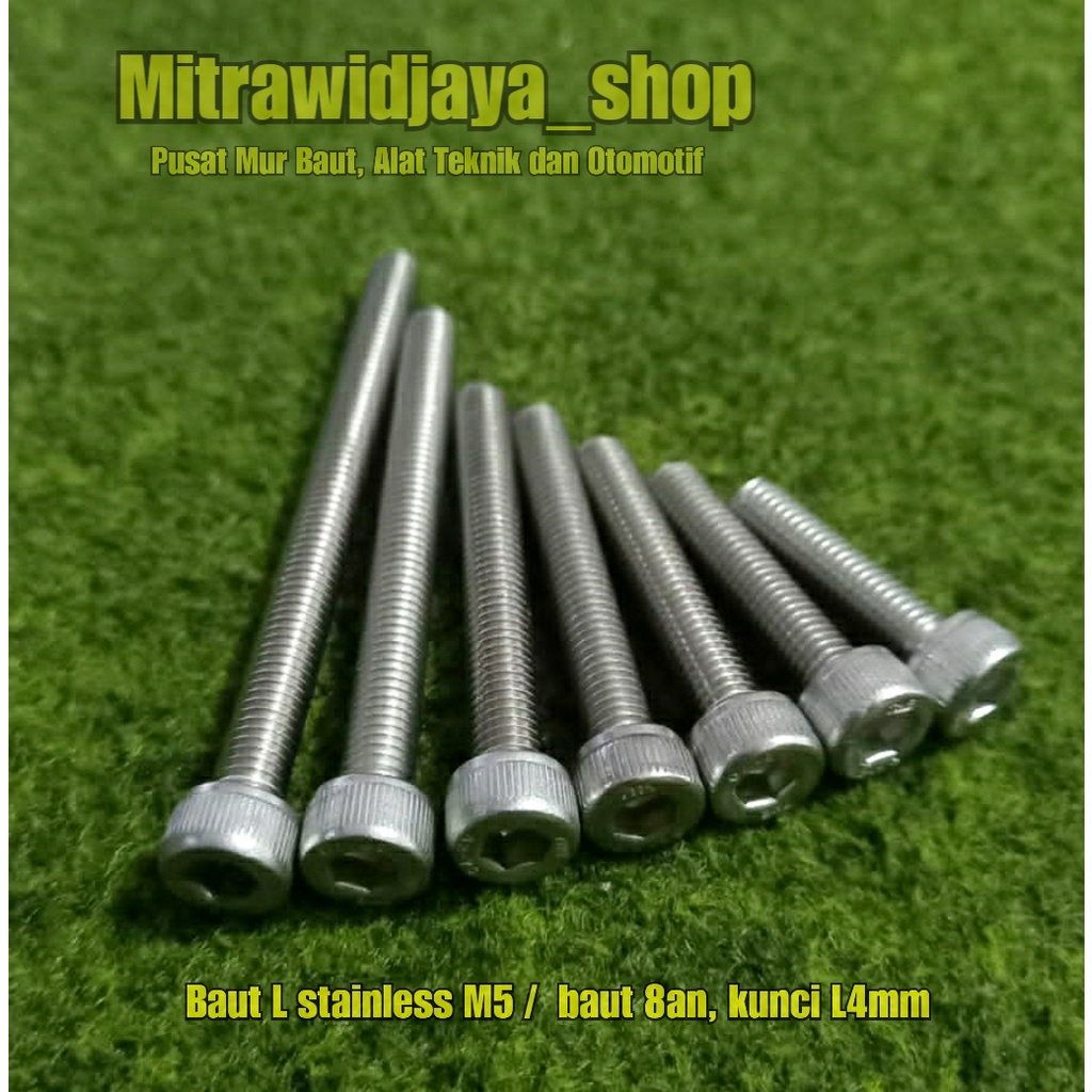 BAUT L STAINLESS STELL A2-70 304 baut 8an baut L ss M5 diameter 5 mm p0,8 baut kunci 8 baut fulldratt stenlis baut pangkon baut visor nmax aerox honda adv baut kunci L4 4mm baut anti karat asli stainless